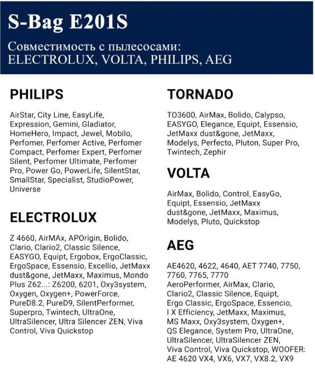 Мешки для пылесоса ELECTROLUX PHILIPS S-BAG