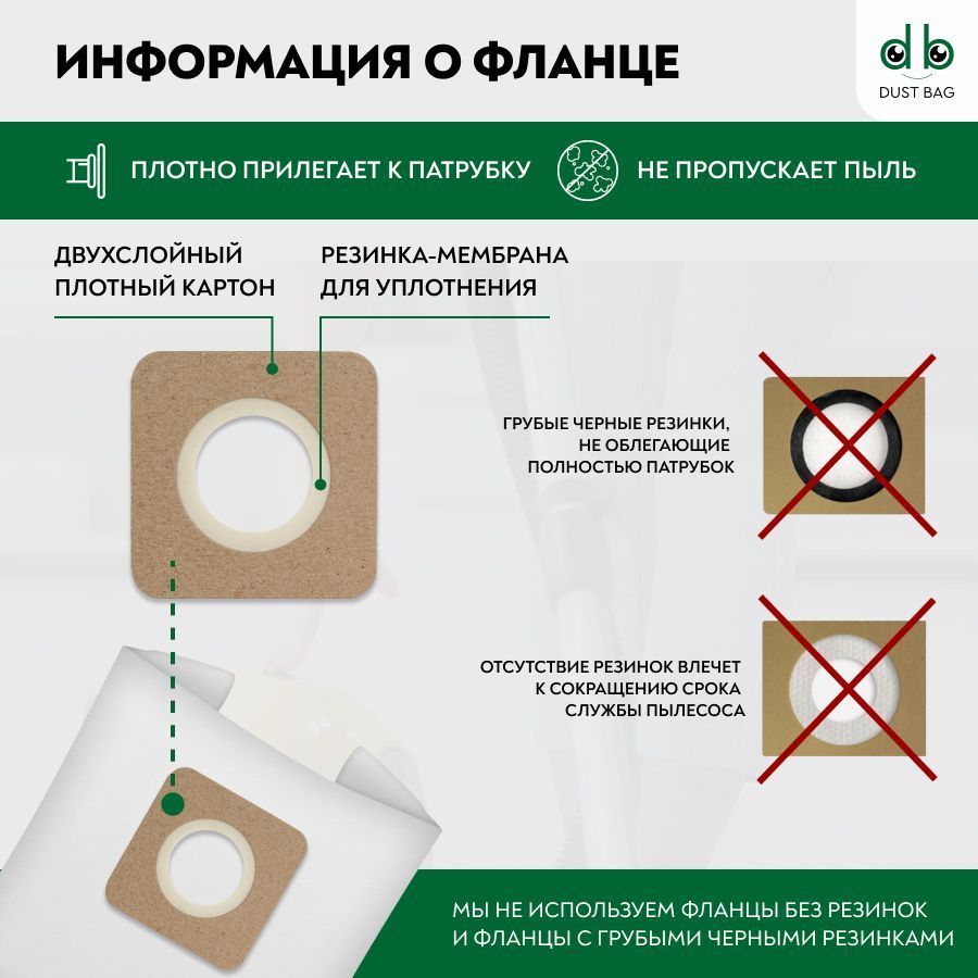 Инновационные технологии изготовления фланцев, внимание к деталям и работа с обратной связью делает пылесборники для пылесоса бренда DUST BAG лучшим решением для защиты вашего пылесоса при строительных, ремонтных, уборочных и прочих работ.