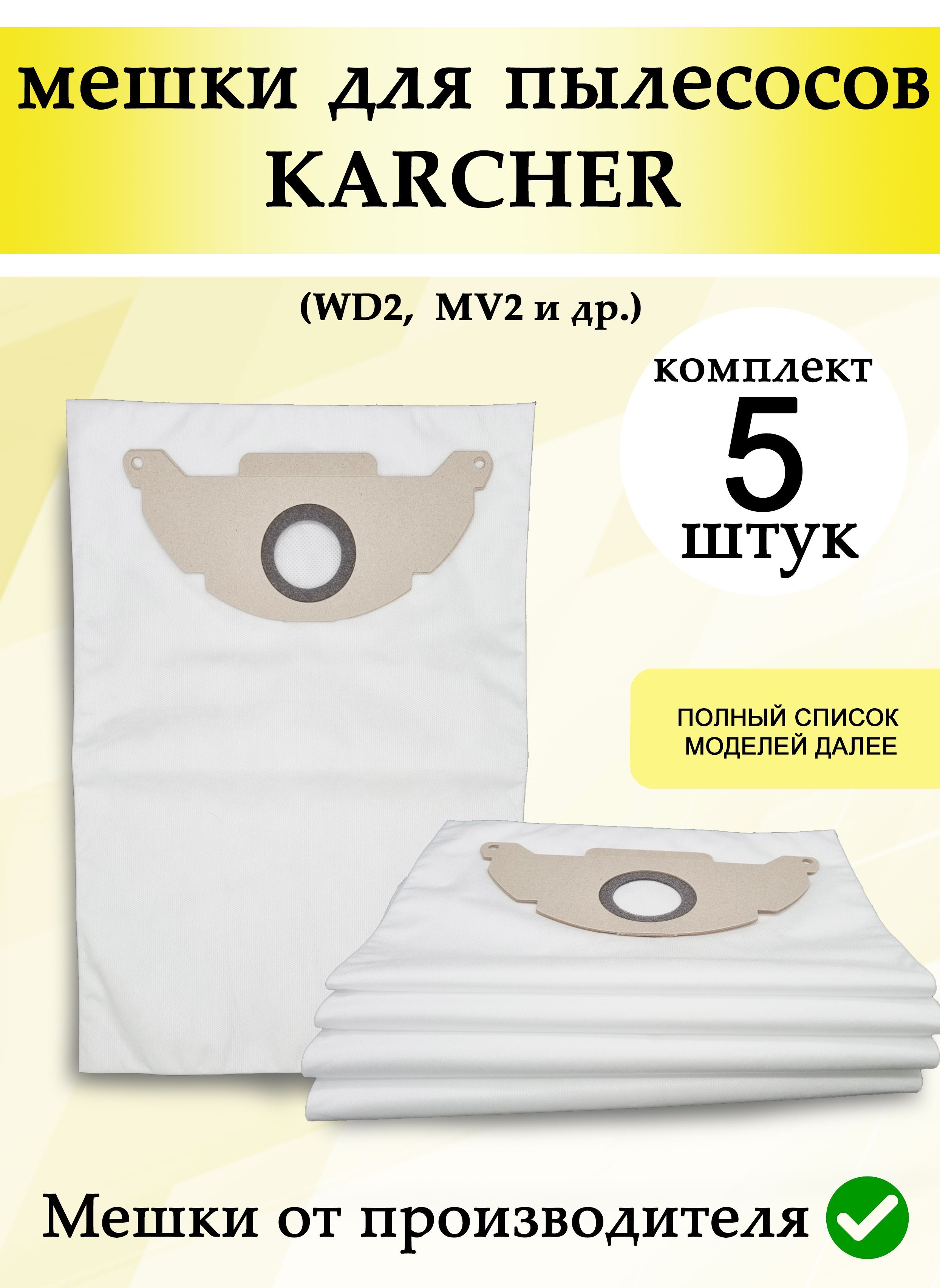 Мешки для пылесоса Karcher WD2 MV2 WD2.200 A 2003 пылесборники для Керхер 5 шт