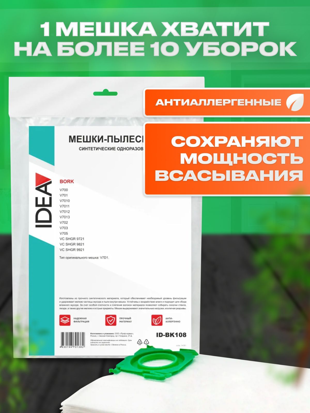 Мешок-пылесборник совместим со следующими моделями пылесосов Bork:
