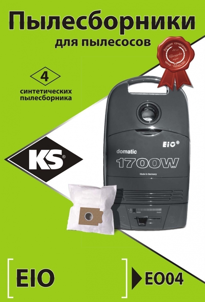 Мешки пылесборники KS EO04 синтетические для пылесоса BORK V5D1 / EIO / Zanussi (4 мешка)