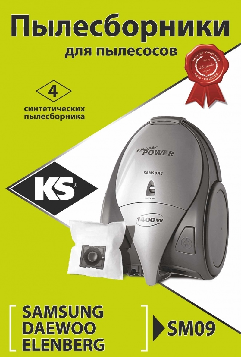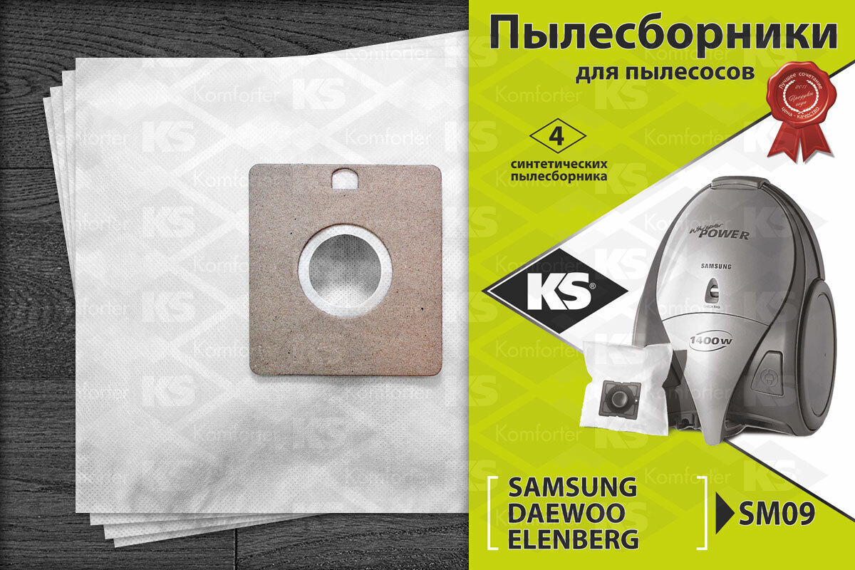 Мешки пылесборники KS SM09 синтетические для любых моделей SAMSUNG / VP95 / VP-95 (4 мешка)