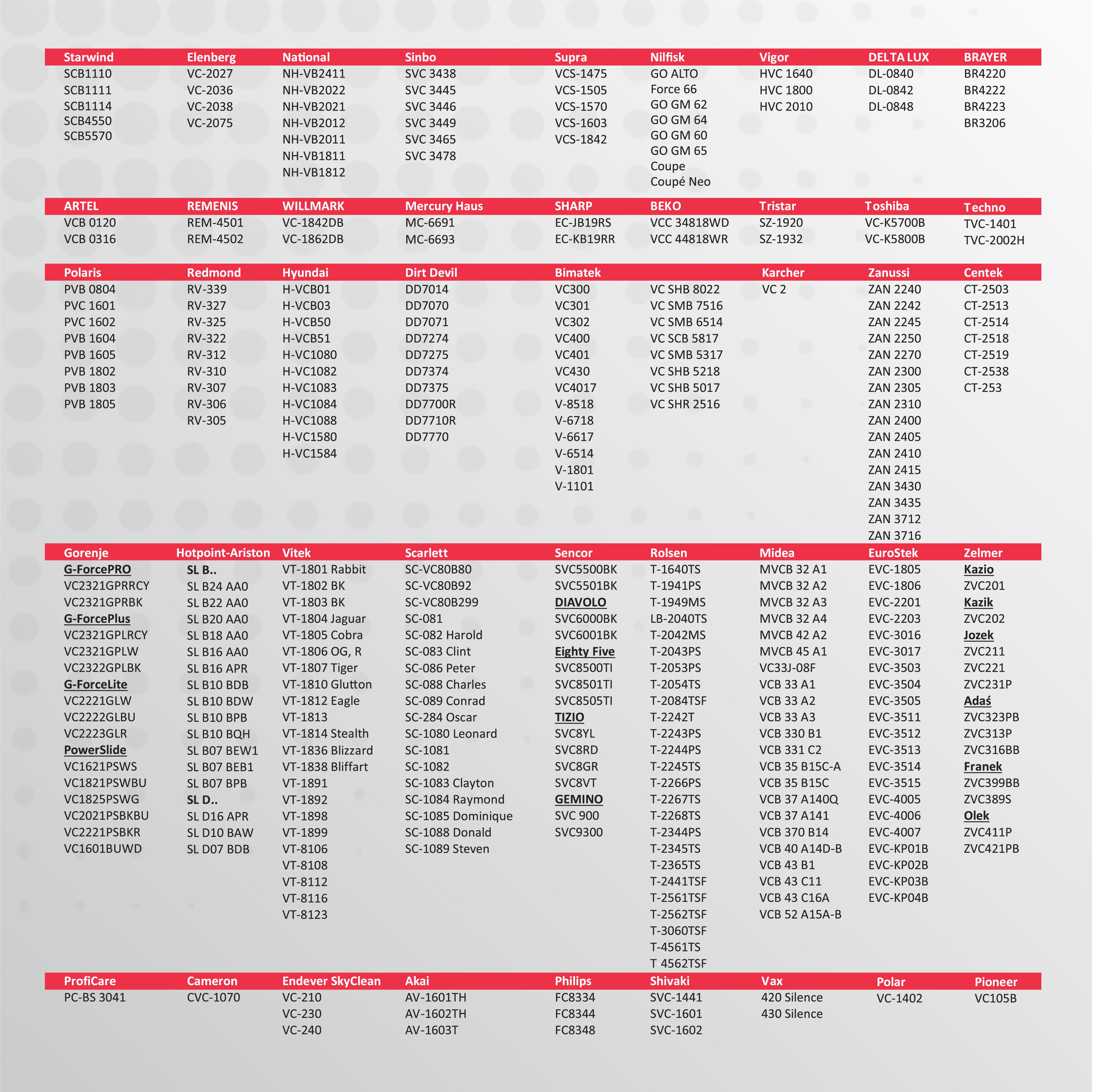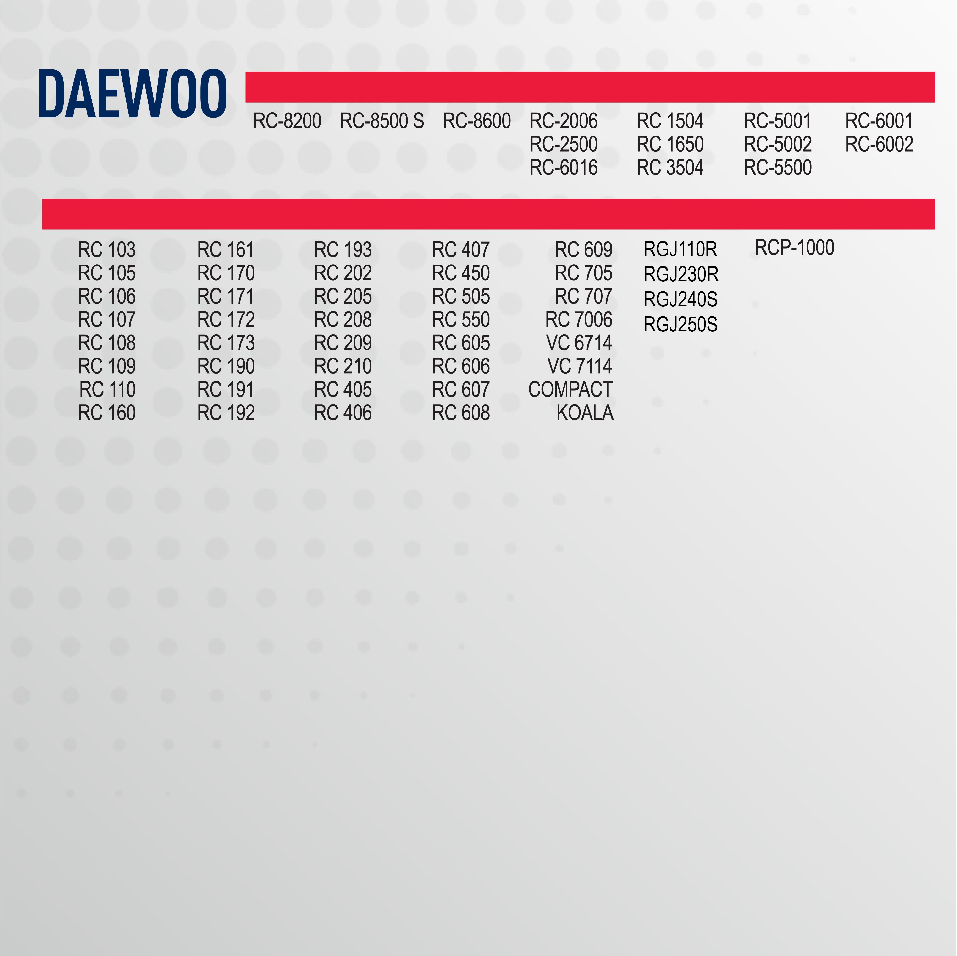 Описание: Бумажные мешки пылесборники для пылесоса DAEWOO: RGJ110R, RGJ230R, RGJ240S, RGJ250S, RC-8200, RC-8500S, RC-8600, RC-7006, RC-6016, RC-6002, RC-6001, RC-5500, RC-5002, RC-5001, RC3504, RC-2500, RC-2006, RC1504, RC1650, RCP-1000, RC103, RC105, RC106, RC107, RC108, RC109, RC110, RC160, RC161, RC170, RC171, RC172, RC173, RC190, RC191, RC192, RC193, RC202, RC205, RC208, RC209, RC210, RC405, RC406, RC407, RC450, RC505, RC550, RC605, RC606, RC607, RC608, RC609, RC705, RC707, VC7114; SAMSUNG (Самсунг) EASY: VCC5241S3K/XEV, VCC5251V3R/XEV; VC2500: VC20M2540JN, VC20M2560JP, VC20M251AWB, VC20M253AWR, VC20M255AWB, VC20M255AWN, VC20M257AWR, VC20M2589JD; VC2500: SC20M2540JN, SC20M2560JP, SC20M251AWB, SC20M253AWR, SC20M255AWB, SC20M255AWN, SC20M257AWR, SC20M2589JD; VC2500: SC15M251AWB, SC15M255AWR; SC7520, SC7540; SC7210, SC7240, SC7250, SC7251, SC7252, SC7270, SC7272, SC7273, SC7275, SC7281, SC7291, SC7294, SC7298; SC7020, SC7025, SC7030, SC7033, SC7041, SC7044, SC7045, SC7050, SC7051, SC7060, SC7061, SC7063; SC6914, SC6915, SC6940, SC6950, SC6955;  SC5496, SC5491, SC5490, SC5483, SC5482, SC5481, SC5480; SC5496, SC5491, SC5490, SC5483, SC5482, SC5481, SC5480; EASY: SC5252, SC5251, SC5250, SC5241, SC5240; SC3140, SC3120; VC5853, VC5813; VC5956, VC5955, VC5915, VC5914, VC5913; VC6123, VC6113, VC6111; VC6211; VC6313; VC6400; VC6713, VC6714, VC6715; VC6813, VC6814, VC6815, VC6816; VC6914, VC6915; VC7113, VC7114, VC7115; VC8614, VC8615; EuroStek: EVC-1805, EVC-1806, EVC-2201, EVC-2202, EVC-2203, EVC-3016, EVC-3017, EVC-3501, EVC-3502, EVC-3503, EVC-3504, EVC-3505, EVC-3511, EVC-3512, EVC-3513, EVC-3514, EVC-3515, EVC-4005, EVC-4006, EVC-4007, EVC-KP01B, EVC-KP02B, EVC-KP03B, EVC-KP04B; SCARLETT: SC-VC80B80, SC-VC80B92, SC-VC80B299, SC-081; Sencor: SVC5500BK, SVC5501BK; DIAVOLO: SVC6000BK, SVC6001BK; Eighty Five: SVC8500TI, SVC8501TI, SVC8505TI; TIZIO: SVC8YL, SVC8RD, SVC8GR, SVC8VT; GEMINO: SVC900, SVC9300; SHARP: EC-JB19RS, EC-KB19 RR; Shivaki: VCB0120, VCB0316, SVC-1441; Sinbo: SVC3438, SVC3445, SVC3446, SVC3449, SVC3465, SVC3478; Starwind: SCB1110, SCB1111, SCB4550, SCB5570; Supra: VCS-1475, VCS-1505, VCS-1570, VCS-1603, VCS-1842; ARTEL: VCB0120, VCU0120, VCC0120, VCB0316, VCB4537; BRAYER: BR4220, BR4222, BR4223; Centek: CT-2503, CT-2513, CT-2514, CT-2518, CT-2519, CT-2538, CT-2539; DELTA LUX: DL-0840, DL-0842, DL-0848; DEXP: VC-1400; Dirt Devil: DD7014, DD7070, DD7071, DD7275, DD7375, DD7700R, DD7710R, DD7770; EDEN: EDK-1813; Endever SkyClean: VC-210, VC-220, VC-230, VC-240; Ligrell: LE-VC180B, LE-VC180R; Magnit: RMV-1651, RMV-1656, RMV-1810; Mercury Haus: MC-6691, MC-6693; ProfiCare: PC-BS 3041; REDMOND: RV-339, RV-329, RV-327, RV-325, RV-322, RV-312, RV-310, RV-307, RV-306, RV-305; REMENIS: REM-4501, REM-4502; Tristar: SZ-1920, SZ-1932; Volle: VLD-306; WILLMARK: VC-1842DB, VC-1862DB; BEKO: VCC34818WD, VCC44818WR; Gorenje: G-ForcePRO: VC2321GPRRCY, VC2321GPRBK; G-ForcePlus: VC2321GPLRCY, VC2321GPLW, C2322GPLBK; G-ForceLite: VC2221GLW, VC2222GLBU, VC2223GLR; PowerSlide: VC1621PSWS, VC1821PSWBU, VC1825PSWG, VC2021PSBKBU, VC2221PSBKR, VC1601BUWD; Hotpoint-Ariston: SLB24AA0, SLB22AA0, SLB20AA0, SLB18AA0, SLB16AA0, SLB16APR, SLB10BDB, SLB10BDW, SLB10BPB, SLB10BQH, SLB07BEW1, SLB07BEB1, SLB07BPB, SLD16APR, SLD10BAW, SLD07BDB; Hyundai: H-VCB01, H-VCB03, H-VCB50, H-VCB51, H-VC1080, H-VC1082, H-VC1083, H-VC1084, H-VC1088, H-VC1580, H-VC1584; Karcher: VC2, 1.198-105.0, VC2 Premium, 1.198-115.0; Midea: MVCB32A1; MVCB32A2; MVCB32A3; MVCB32A4; MVCB42A2; MVCB45A1, MVCB52A, VC33J-08F, VCB33A1, VCB33A2, VCB33A3, VCB330B1, VCB331C2, VCB35B15C-A, VCB35B15C, VCB37A140Q, VCB37A141, VCB370B14, VCB40A14D-B, VCB43B1, VCB43C11, VCB43C16A, VCB5215A-B; National: NH-VB2411, NH-VB2022, NH-VB2021, NH-VB2012, NH-VB2011, NH-VB1811, NH-VB1812; Pioneer: VC105B; Polaris: PVB0804, PVB1604, PVB1605, PVB1802, PVB1803, PVB1805; Rolsen: T-1640TS, T-2042MS, T-2043PS, T-2051MS, T-2053PS, T-2054TS, T-2084TSF, T-2242T, T-2243PS, T-2244PS, T-2245TS, T-2264T, T-2266PS, T-2267TS, T-2268TS, T-2344PS, T-2345TS, T-2365TS, T-2441TSF, T-2561TSF, T-2562TSF, T-3060TSF, T-4561TS, T-4562TSF; VITEK: VT-1802, VT-1813, VT-8106VT, VT-8108BK, VT-8112, VT-8116, VT-8123R; Vax: 420 Silence, 430 Silence; Zelmer: Kazio: ZVC201, Kazik: ZVC202; Jozek: ZVC211, ZVC221, ZVC231P; Adaś: ZVC323PB, ZVC313P, ZVC316BB; Franek: ZVC399BB, ZVC389S; Olek: ZVC411P, ZVC421PB; Akai: AV-1601TH, AV-1602TH, AV-1603T; Bimatek: VC300, VC301, VC302, VC400, VC401, VC430, VC4017, V-8518, V-6718, V-6617, V-6514, V-1801, V-1101; Cameron: CVC-1070; Elenberg: VC-2027, VC-2036, VC-2038, VC-2075; Philips: FC8334, FC8344, FC8348; Polar: VC-1402; Techno: TVC-1401, TVC-2002H; Toshiba: VC-K5700B, VC-K5800B; Vigor: HVC1640, HVC1800, HVC2010 (тип DU 105) Материал мешков - экологически чистая биоразлагаемая гипоаллергенная многослойная бумага, которая помогает избавиться от пыли в квартире, доме, офисе, на даче. В подарок универсальный фильтр для пылесоса (микрофильтр). Topperr - недорогие товары для уборки европейского качества для дома, офиса, квартиры, комнаты, кухни, дачи. Topperr 1004 Topperr DW 5 Мешки для пылесоса Daewoo - это необходимый компонент для поддержания чистоты в вашем доме. Бумажные мешки для пылесоса Daewoo являются одноразовыми. Они предназначены для использования только один раз, после чего их нужно выбросить. Бумажные мешки для пылесоса Daewoo обеспечивают высокий уровень фильтрации и подходят для люде