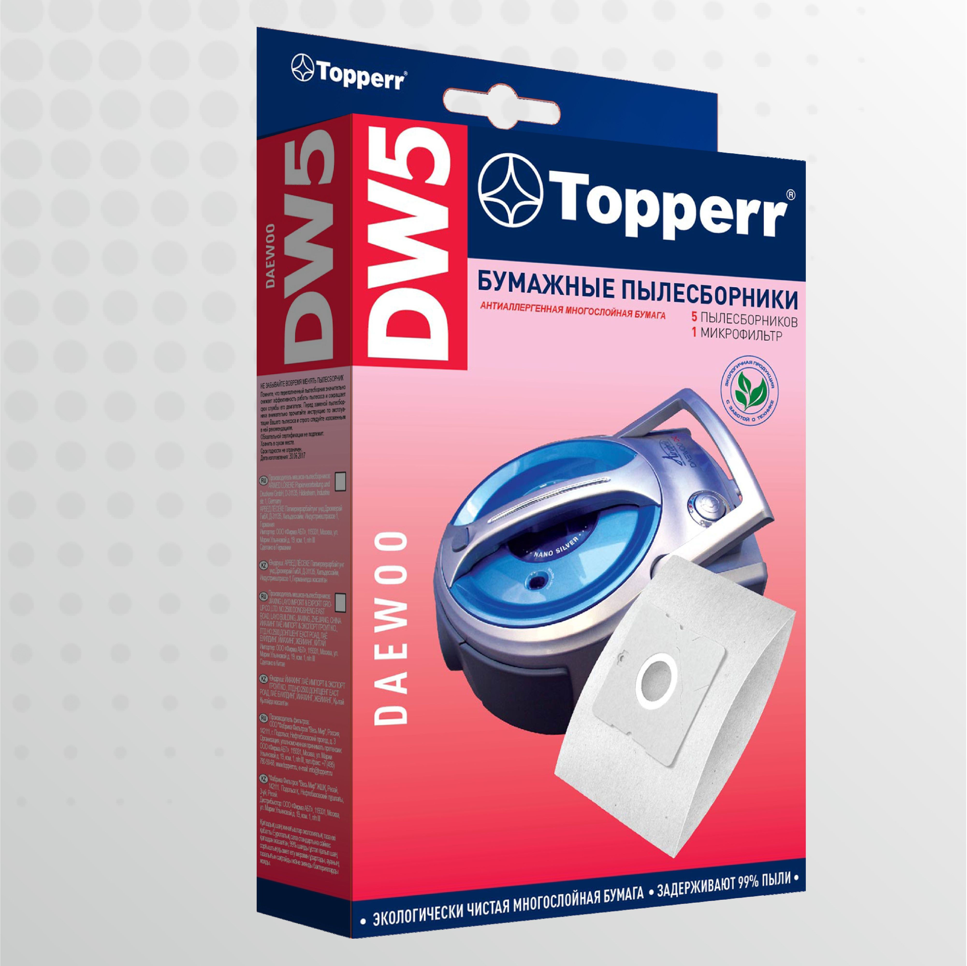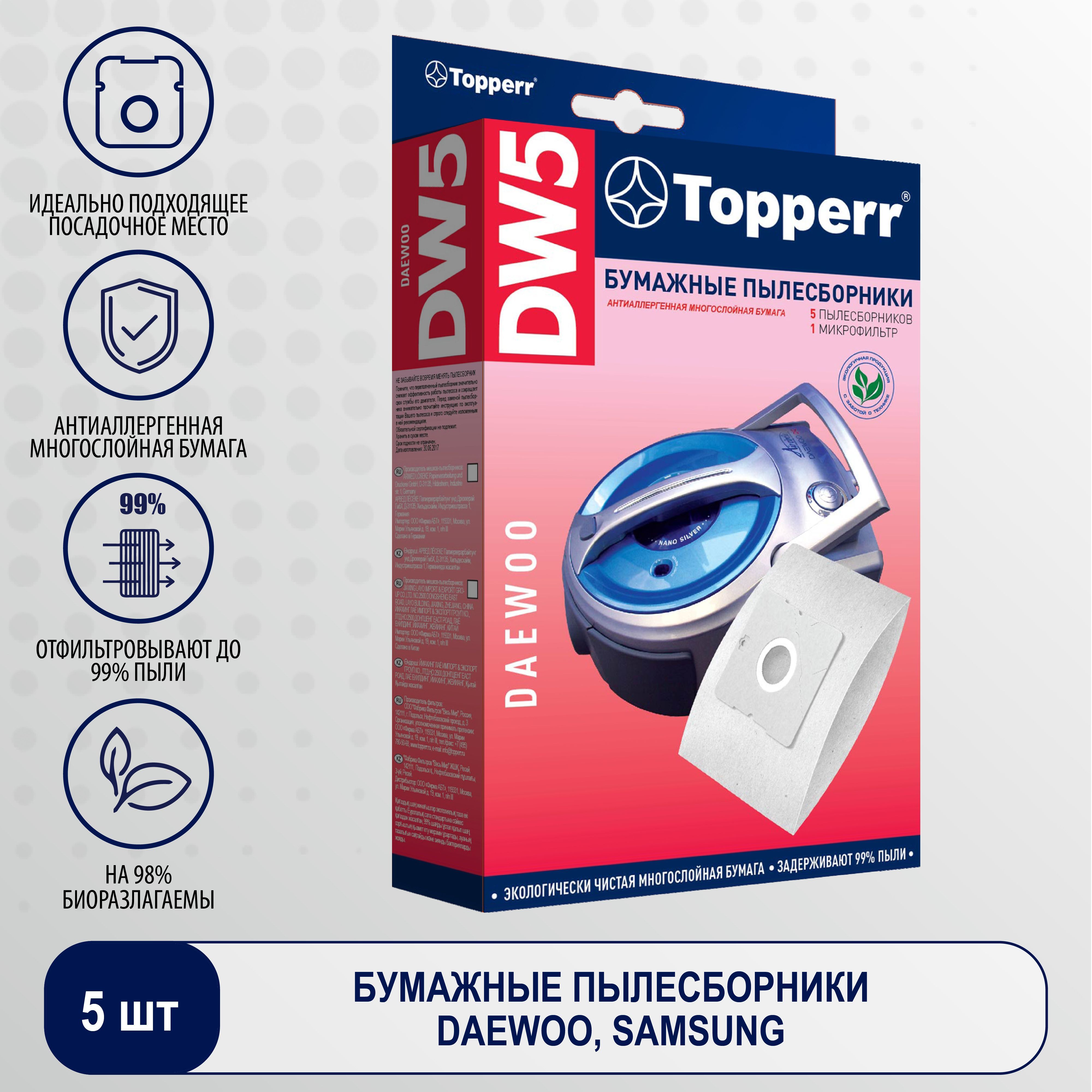 Мешок для пылесоса Daewoo, Samsung, Scarlett и Gorenje, Hotpoint-Ariston, Midea, Zelmer, Redmond и Zanussi - 5 шт, бумажные пылесборники и фильтр в подарок Topperr DW5 1004