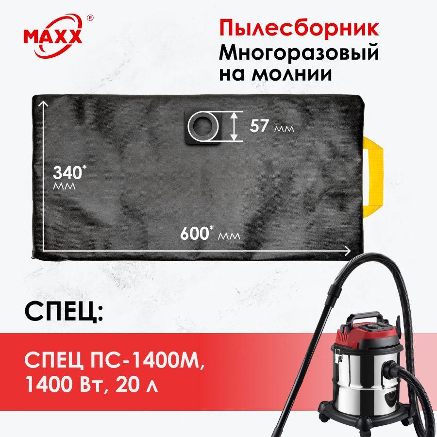 Мешок многоразовый на молнии для пылесоса СПЕЦ ПС-1400М, 1400 Вт, 20 л