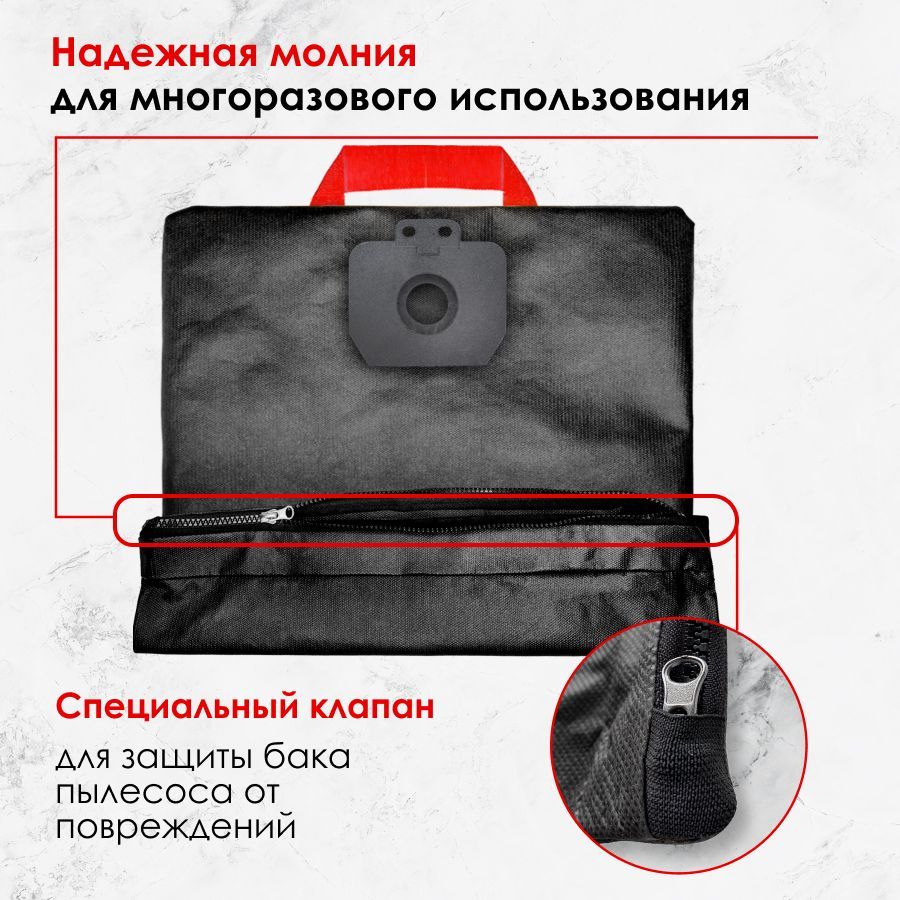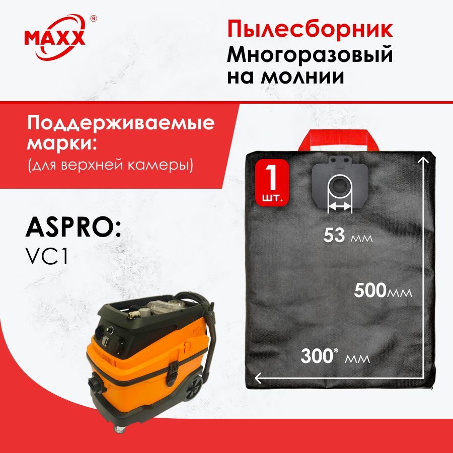 Мешок многоразовый на молнии для строительного пылесоса ASPRO-VC1 арт.101704 (для верхней камеры)