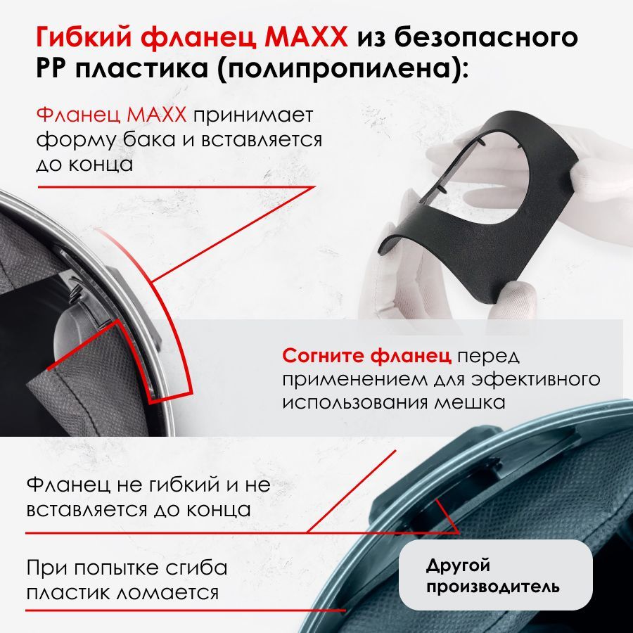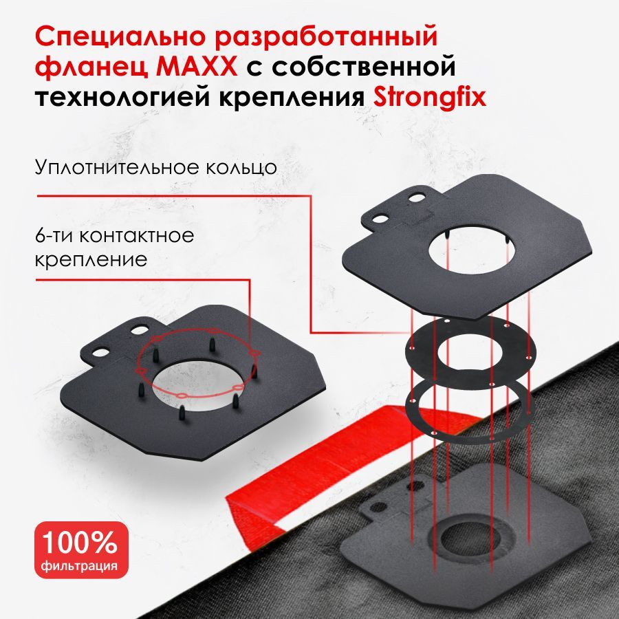 Специально разработанное 6-контактное крепление STRONGFIX пластиковой пластины к фильтрующему материалу дает возможность использовать мешок до 25 циклов. А безопасный PP-пластик не наносит вред вашему здоровью. Все давно отказались от использования вспененного ПВХ в технике, быту и в работе, потому что знают, какой вред наносит данный материал.