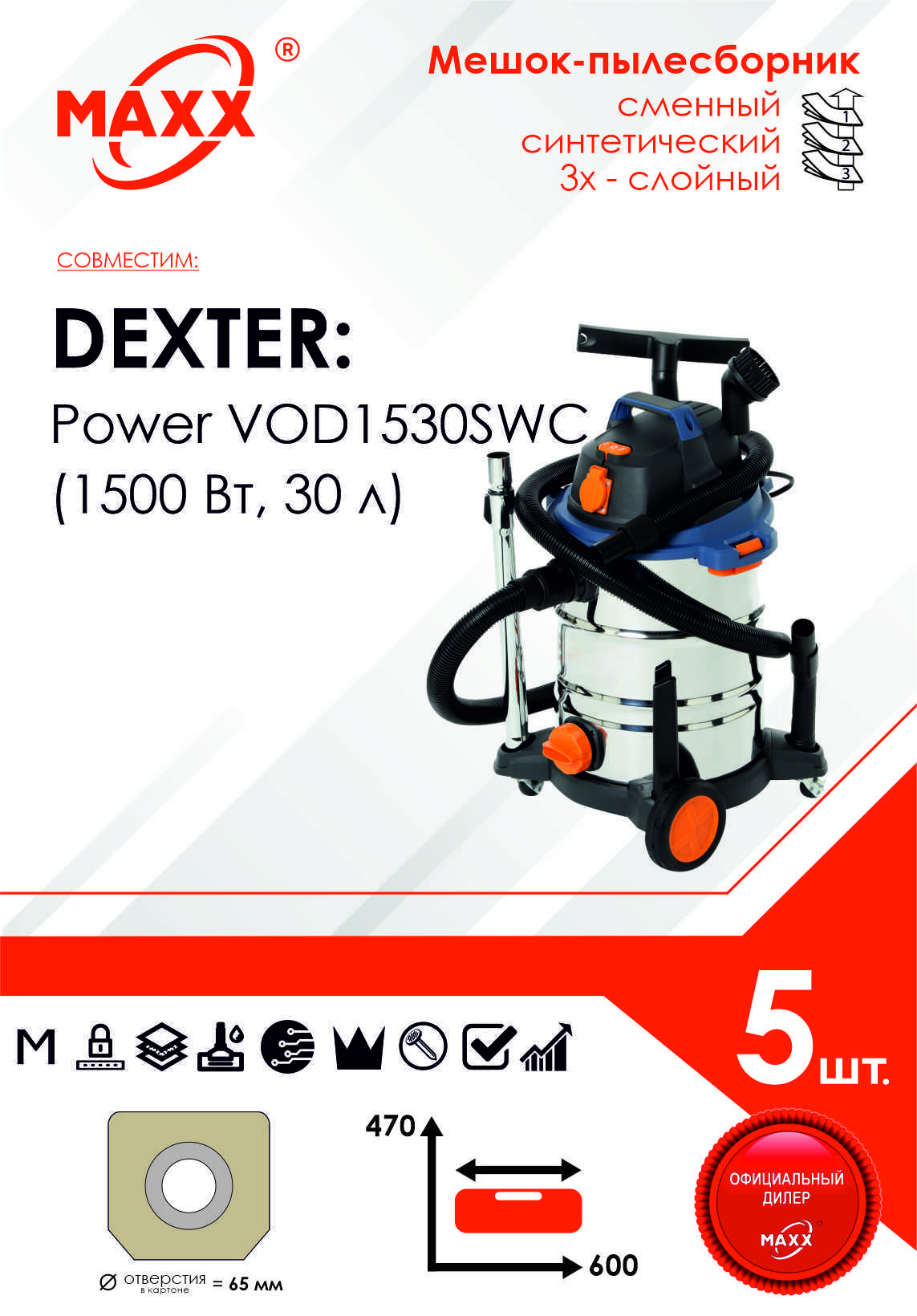 Мешок - пылесборник 5 шт. для пылесоса Dexter Power VOD1530SWC 30 л, Dexter 30 л 1500 Вт, Арт. 18057179
