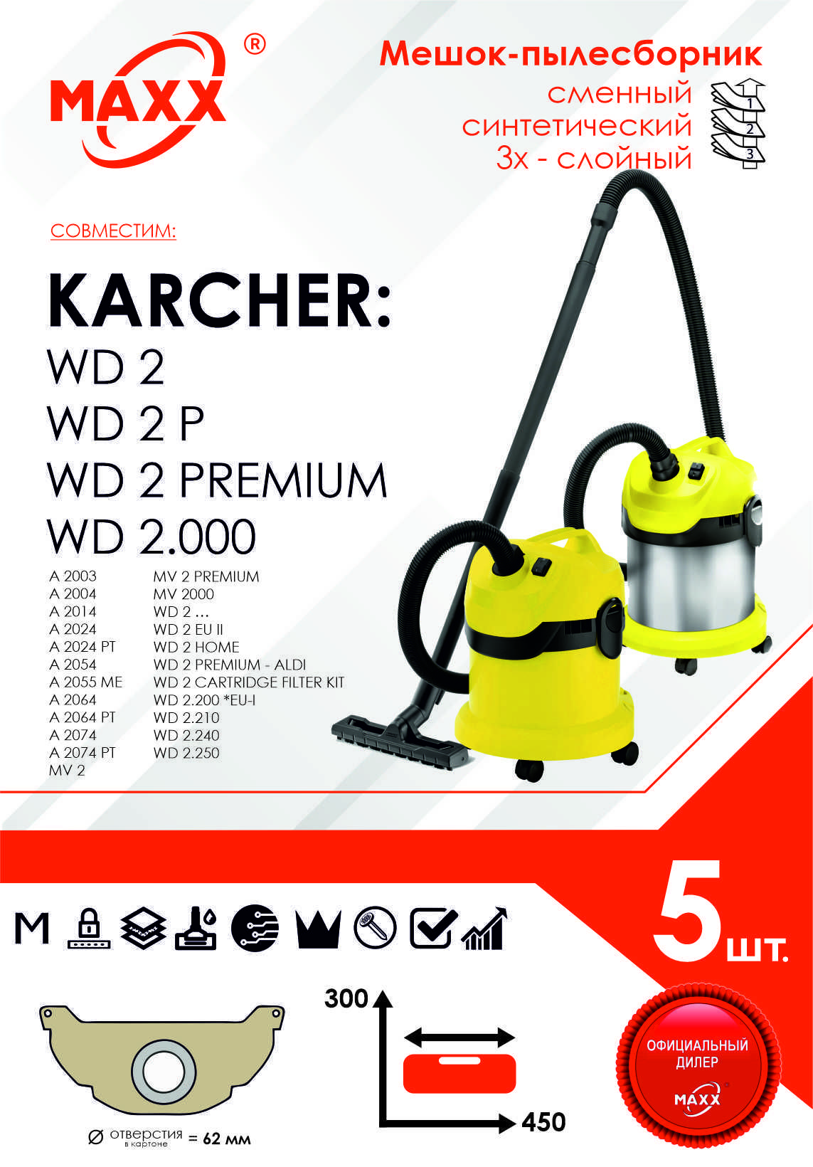 Описание: Комплект синтетических фильтр-мешков (пылесборников) премиального качества бренда MAXX специально разработан для пылесоса KARCHER серий WD 2, MV 2, A 2000 - 2099 SERIES (6.904-322.0). Мешок произведен из многослойного нетканого микроволокна, состоит из 3х слоев, каждый из которых содержит 3 внутренних, спаянных между собой специальным способом.