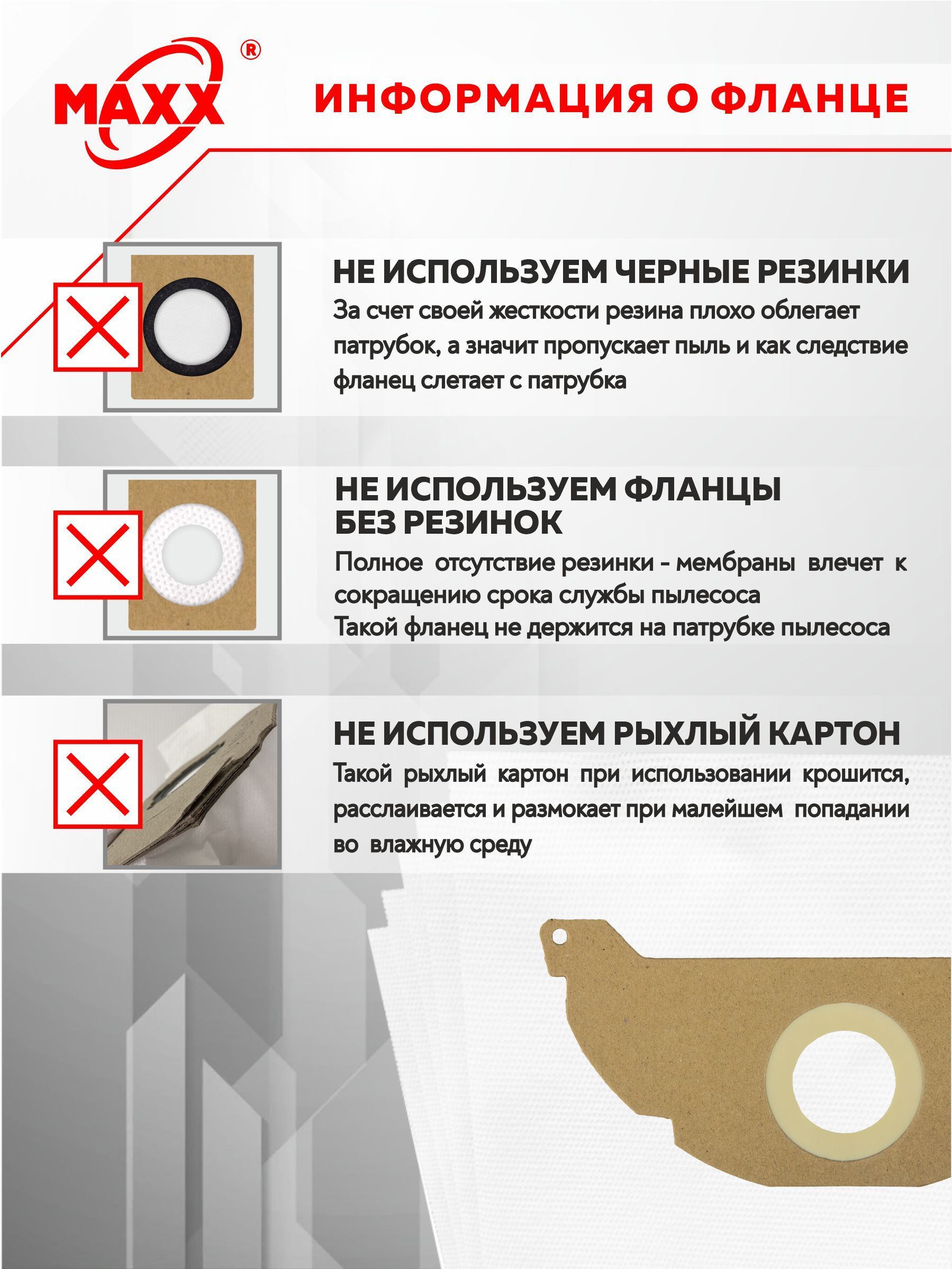 Высокая фильтрующая способность материала, надежная фиксация фланец-манжеты к фильтрующему материалу с помощью специально разработанной клеевой эмульсии делают фильтр-мешки производства MAXX (МАКС) незаменимым аксессуаром для профессиональных пылесосов.
