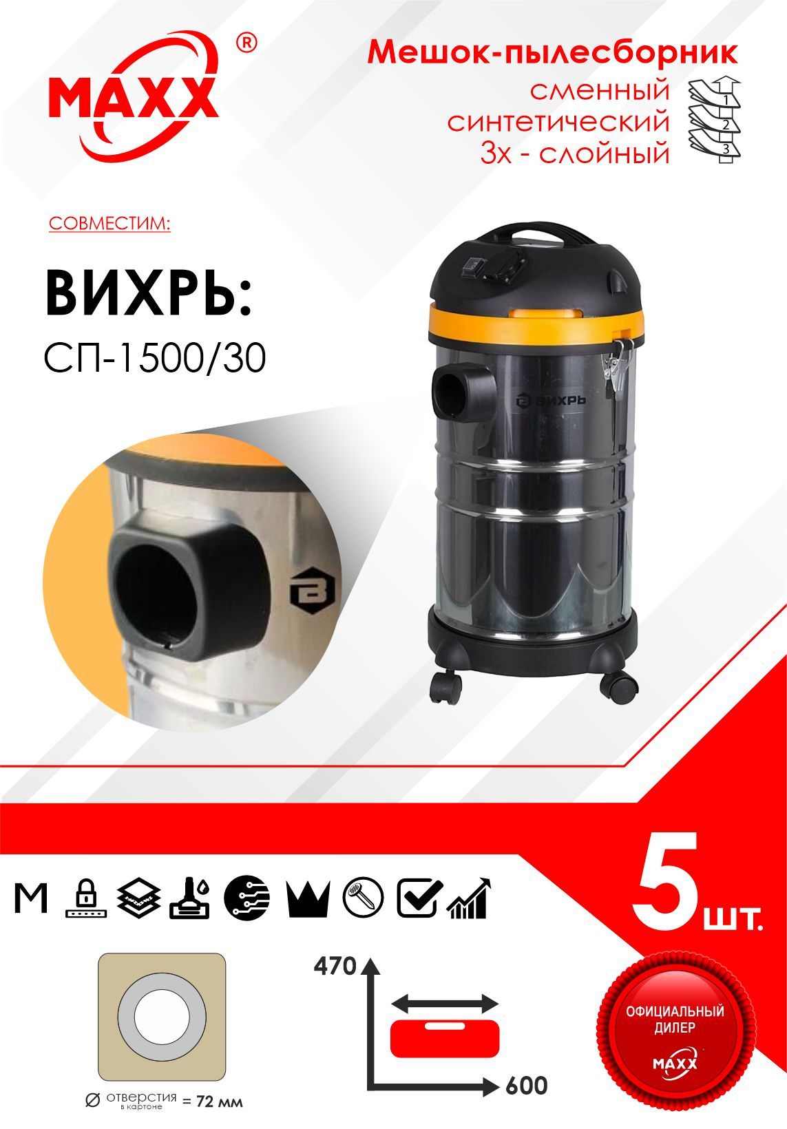 Описание: Комплект синтетических фильтр-мешков (пылесборников) высокого качества бренда MAXX специально разработан для пылесоса ВИХРЬ СП-1500/30 (для старой версии).