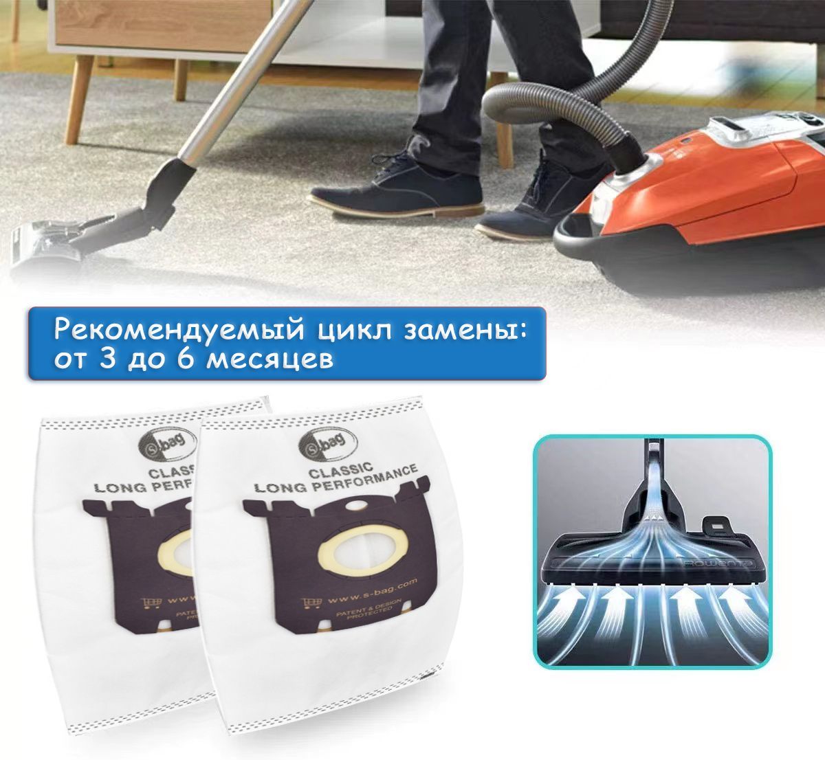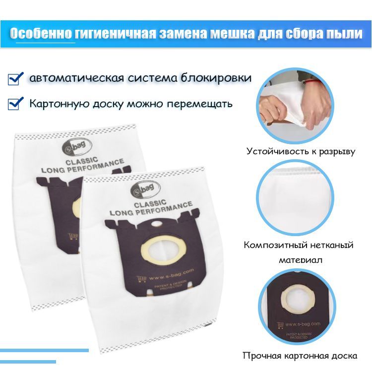 • Долговечность: S-Bag Classic Long Performance служит вдвое дольше, чем традиционные бумажные мешки для пылесосов.