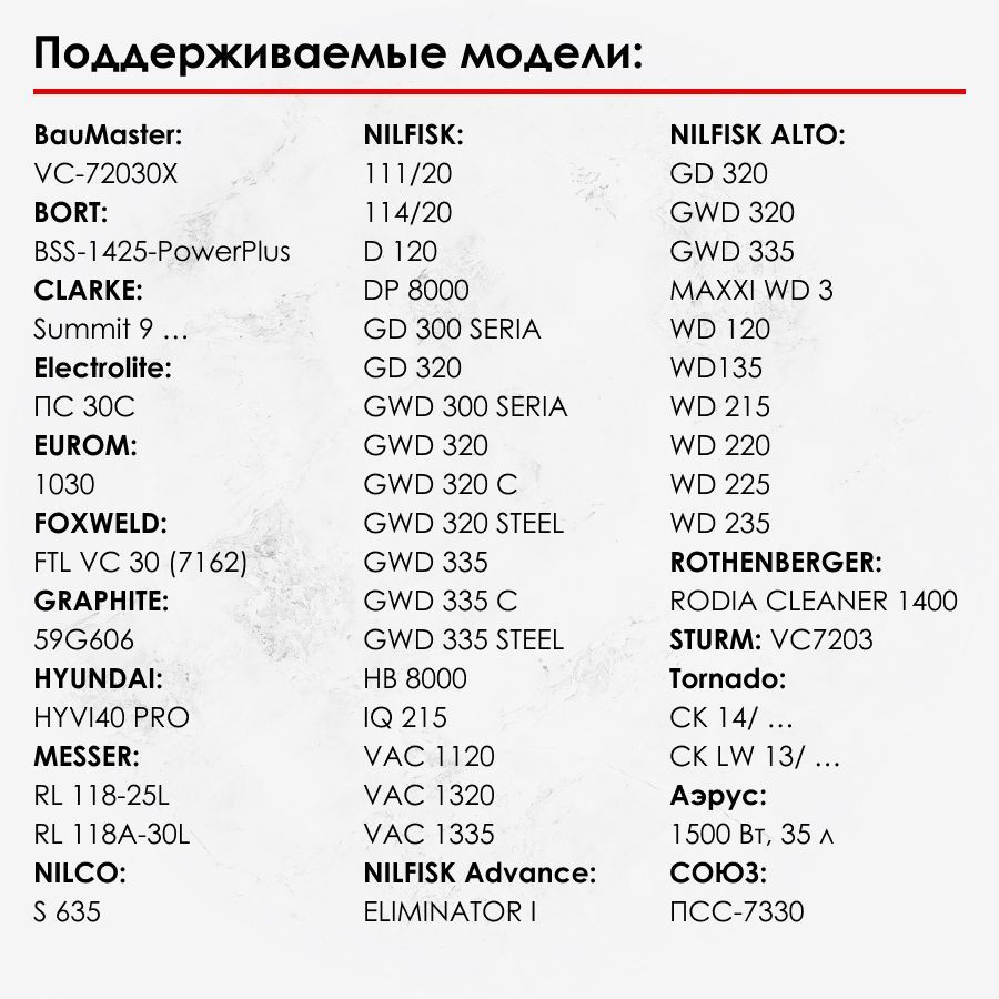 Описание: Многоразовый мешок - пылесборник MAXX серии DARKSIDE с надежным фиксирующим замком - молния - произведен из уникального особопрочного нетканого микроволокна. Разработан для пылесосов марок BauMaster, BORT, CLARKE, Electrolite, EUROM, FOXWELD, GRAPHITE, HYUNDAI, MESSER, NILCO, NILFISK, NILFISK Advance, NILFISK ALTO, ROTHENBERGER, STURM, Tornado, Аэрус, СОЮЗ указанного ниже модельного ряда.