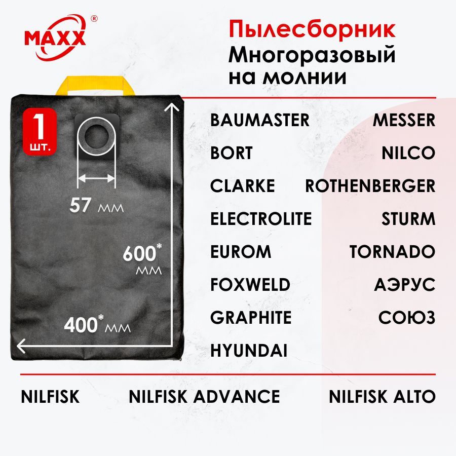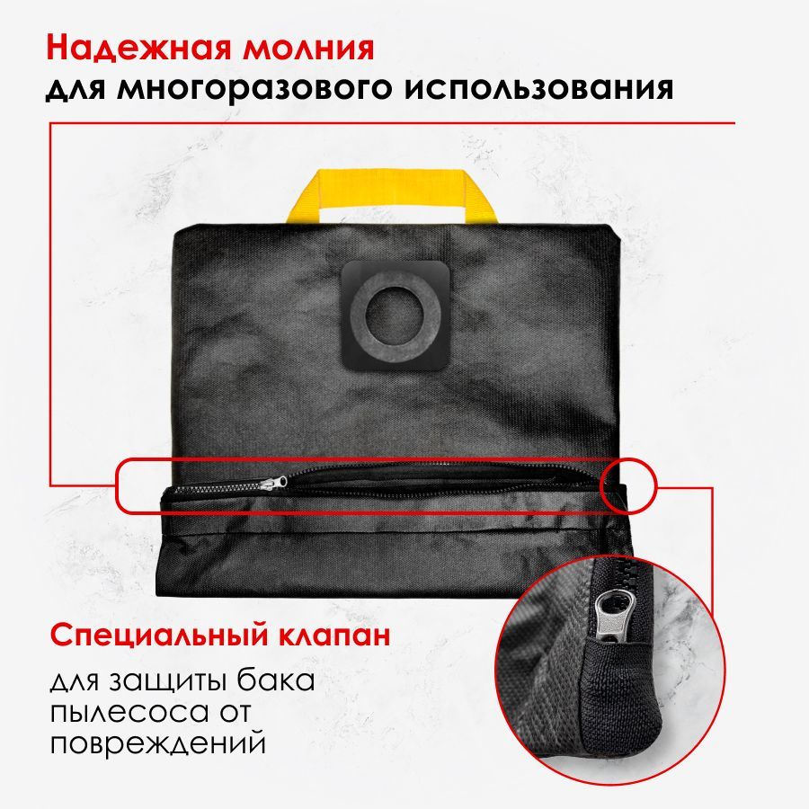 Мешок - пылесборник многоразовый на молнии для пылесосов BauMaster Bort Electrolite, Foxweld Graphite Messer Nilfisk, Rothenberger Sturm Аэрус, Союз