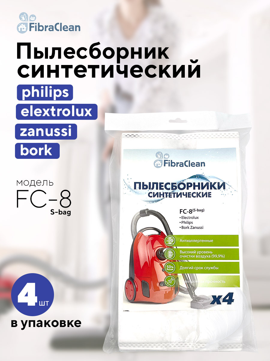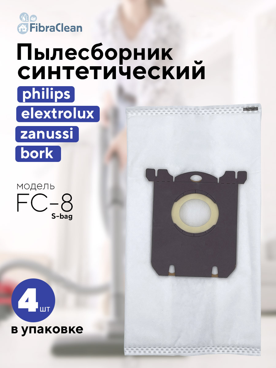 Мешок-пылесборник синтетический Fibraclean FC-8 (S-bag) для Electrolux, Philips, 4шт