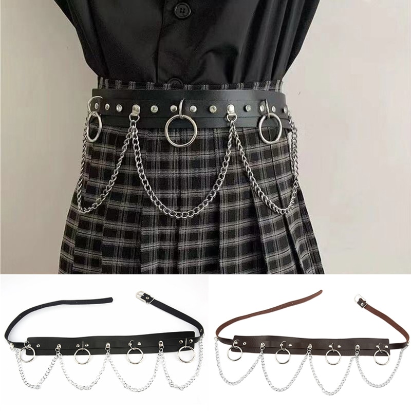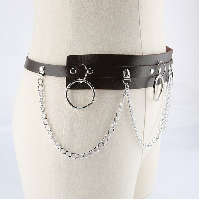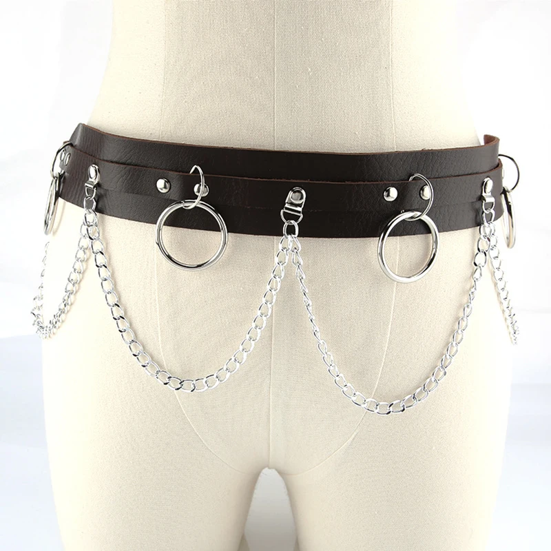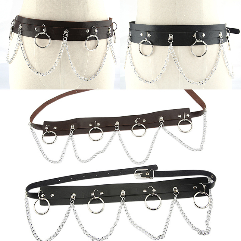Металлическая цепочка кольцо поясной ремень широкий пояс PU платье джинсы поясная цепочка ремень из искусственной кожи ремень с цепочкой Harajuku DIY Sexy