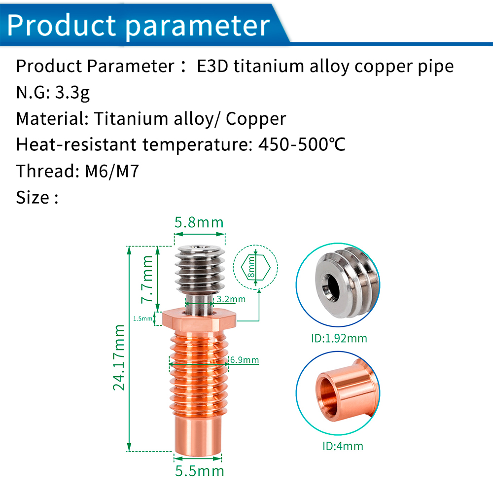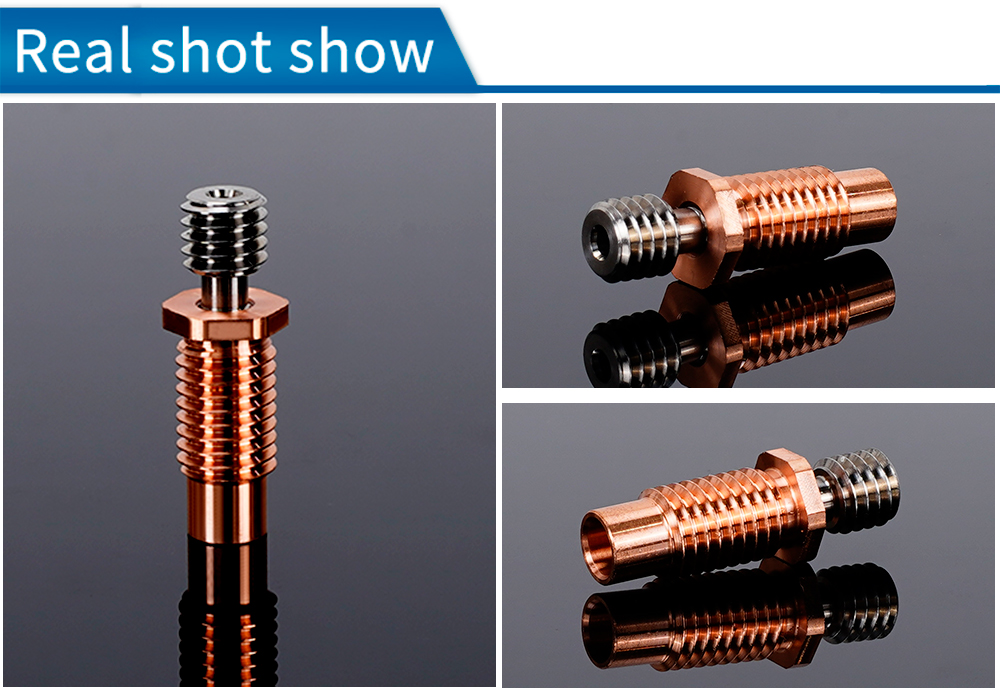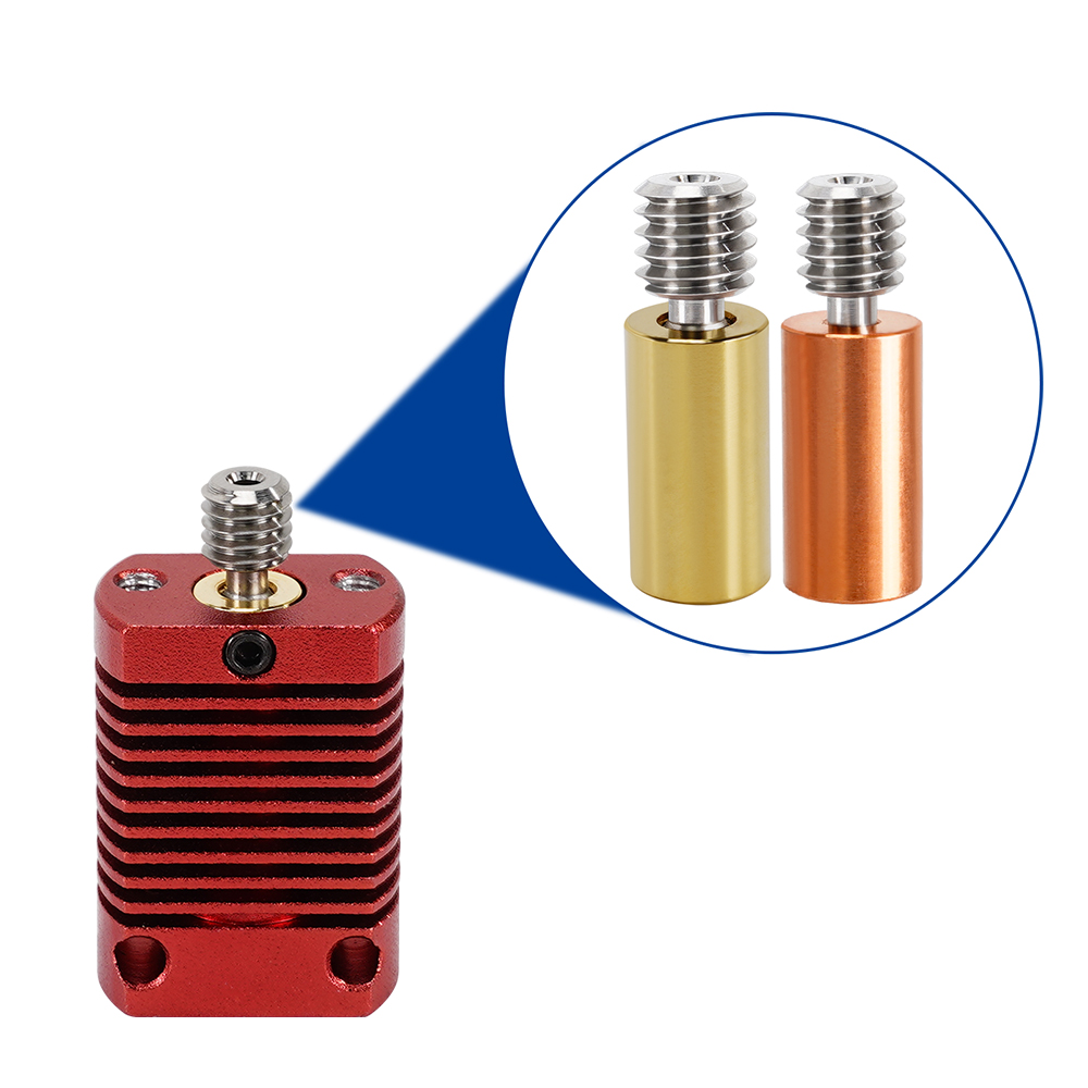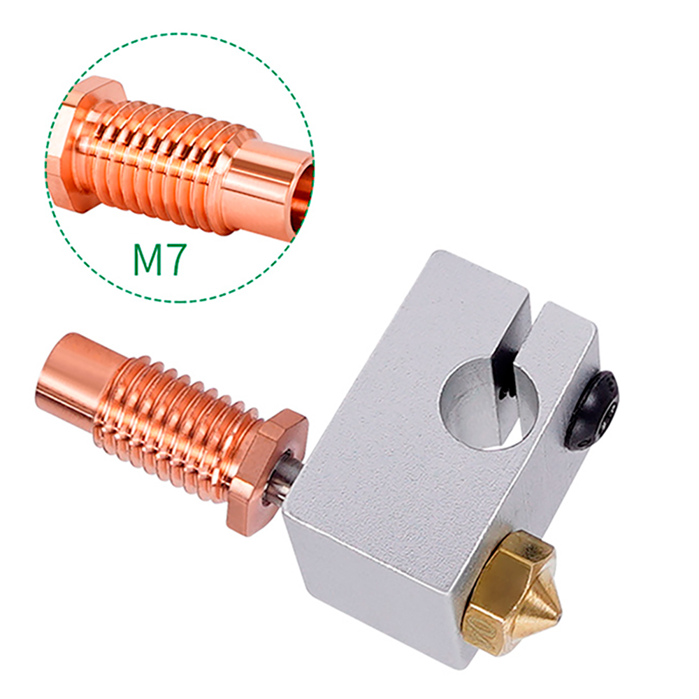 Для изготовления трубки горла используются два вида металлов. Титан используется в передней части M6 для уменьшения теплопроводности, в то время как медь используется в задней части M7, чтобы помочь рассеиванию тепла. Характеристики теплового барьера лучше, чем у оригинального V6, и качество печати улучшено.