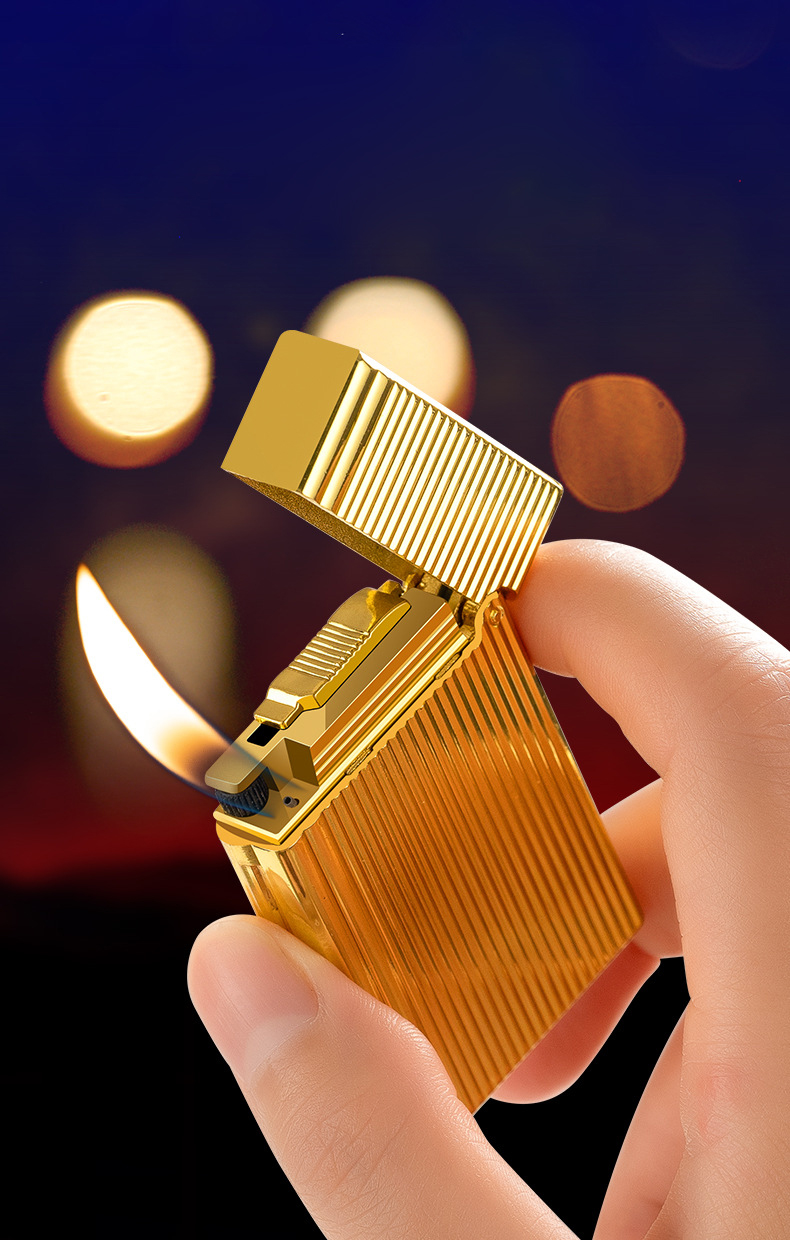 Металлическая полосатая Громкая Зажигалка необычные зажигалки прикуриватель креативная колесная Зажигалка Бутановая газовая зажигалка открытый огонь квадратная зажигалка