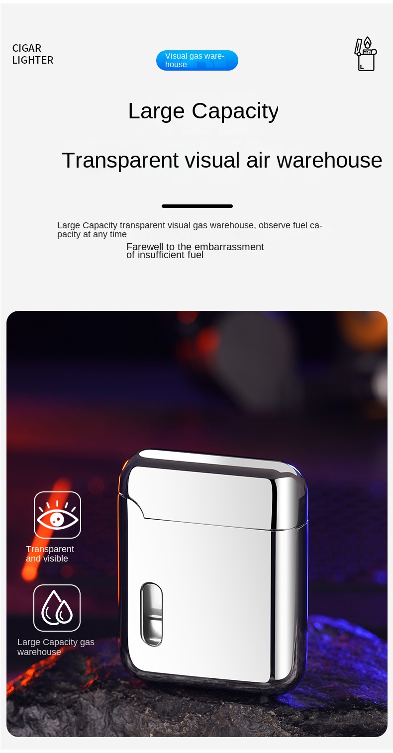 Представляем наши лучшие аксессуары для сигарет-зажигалку с видимой газовой горелкой! Обладая возможностью переключения между двумя типами пламени, эта Бутановая газовая зажигалка незаменима для любого курильщика. Высокая скорость зажигания при измельчении обеспечивает быстрый и легкий свет каждый раз.