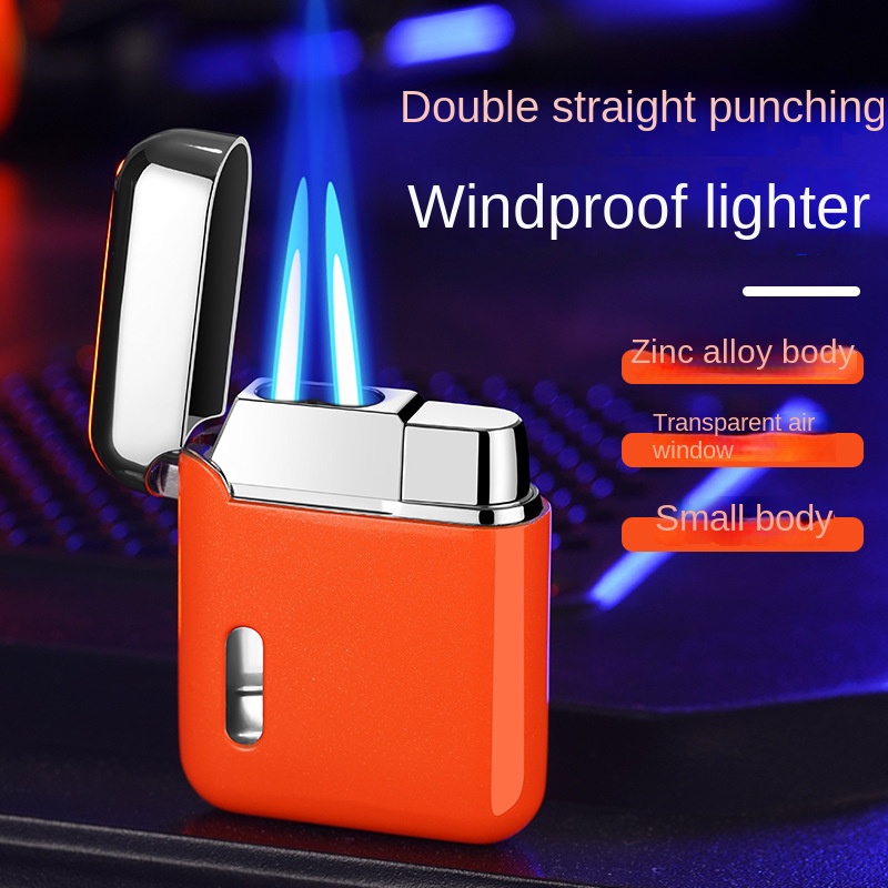 Газовая Зажигалка Видимая газовая Бутановая Зажигалка с двумя факелами Металлическая портативная ветрозащитная необычная Зажигалка для сигарет Проблемы с перемешиванием