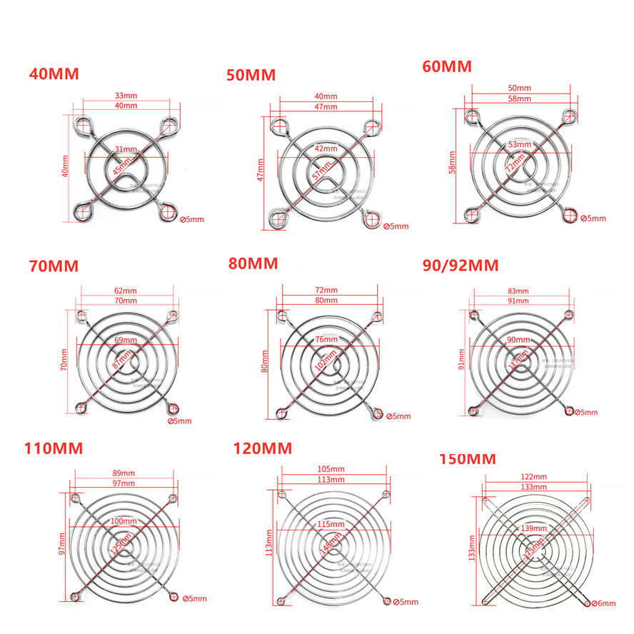 Металлическая решетка для вентилятора, 30/40/50/60/70/80/90/110/120/135/140/150/180/200 мм