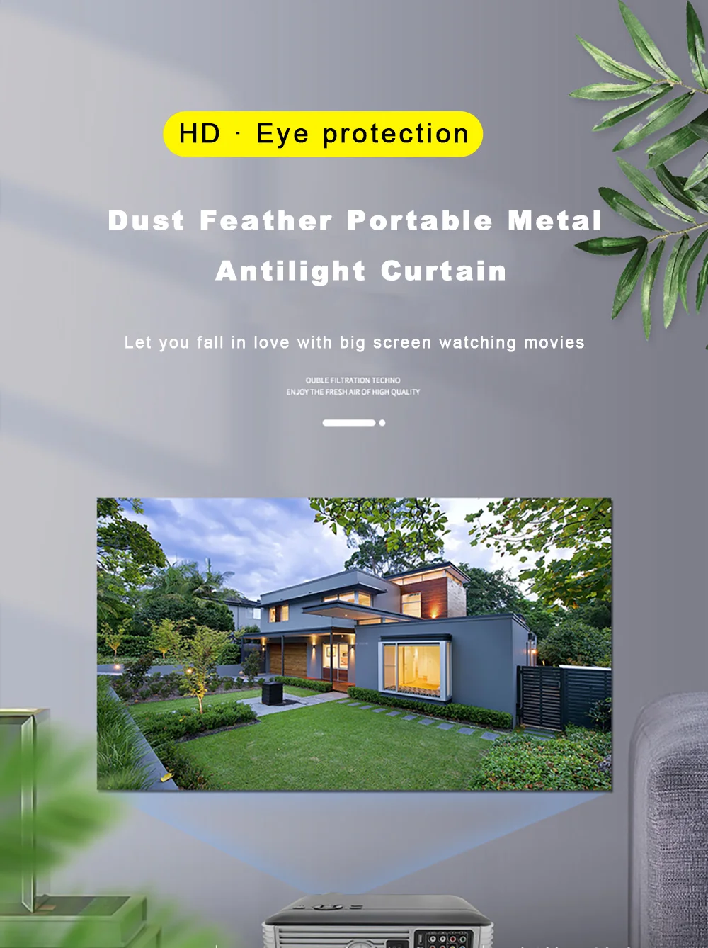 Этот экран изготовлен из волокнистого материала высокой плотности, без запаха, без вреда для человеческого тела и здоровья. Слой металла и частицы шарика в этом экране будут увеличивают яркость. Дайте вам лучший опыт для смотреть. Серый занавес, который может эффектно улучшить контраст проекции. Вам не нужно закрывать дверь или окна в дневное время. Это также может принести вам отличный эффект проекции