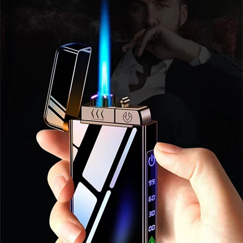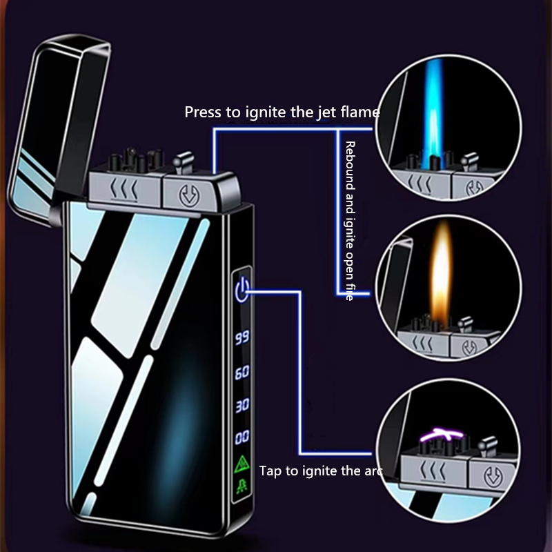 2023 Новая ветрозащитная металлическая USB-зажигалка, струйная двойная плазменная дуговая зажигалка, газовая электрическая Бутановая заряжаемая трубка, прикуриватель