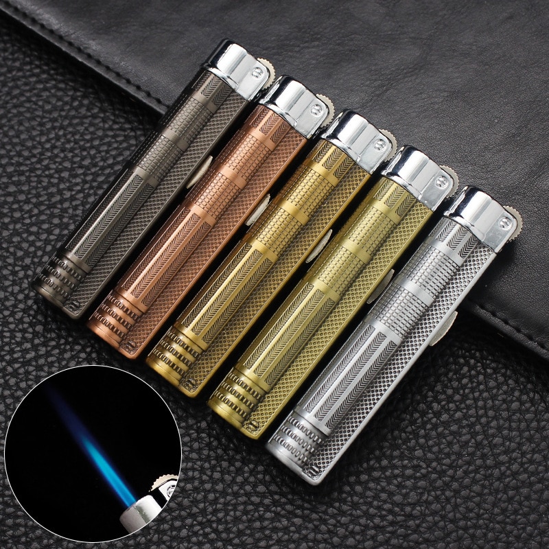 Металлический ветрозащитный Портативный газовый факел Jet Lockable Зажигалка многоразового газового шлифовального круга Зажигалки аксессуары для курения Подарки для мужчин
