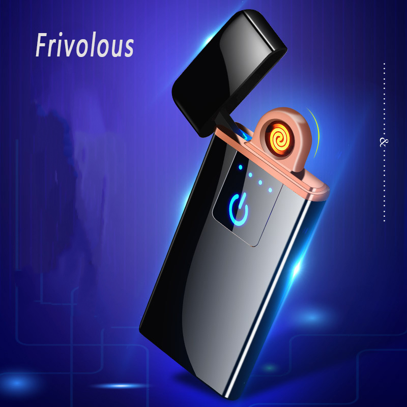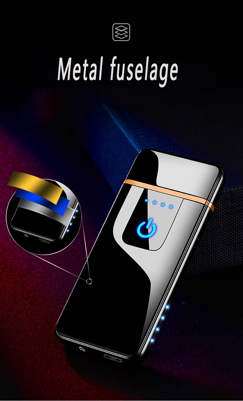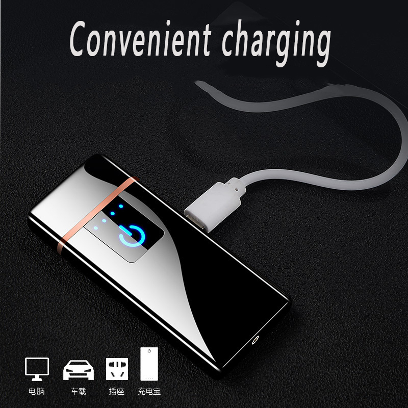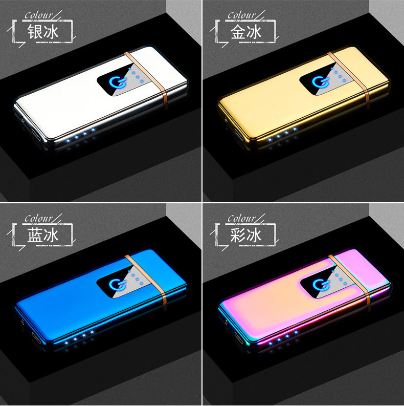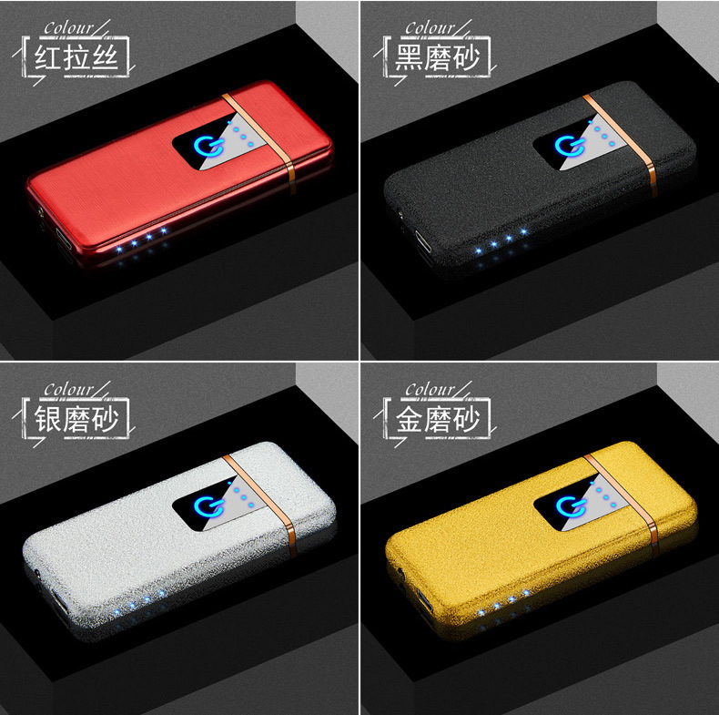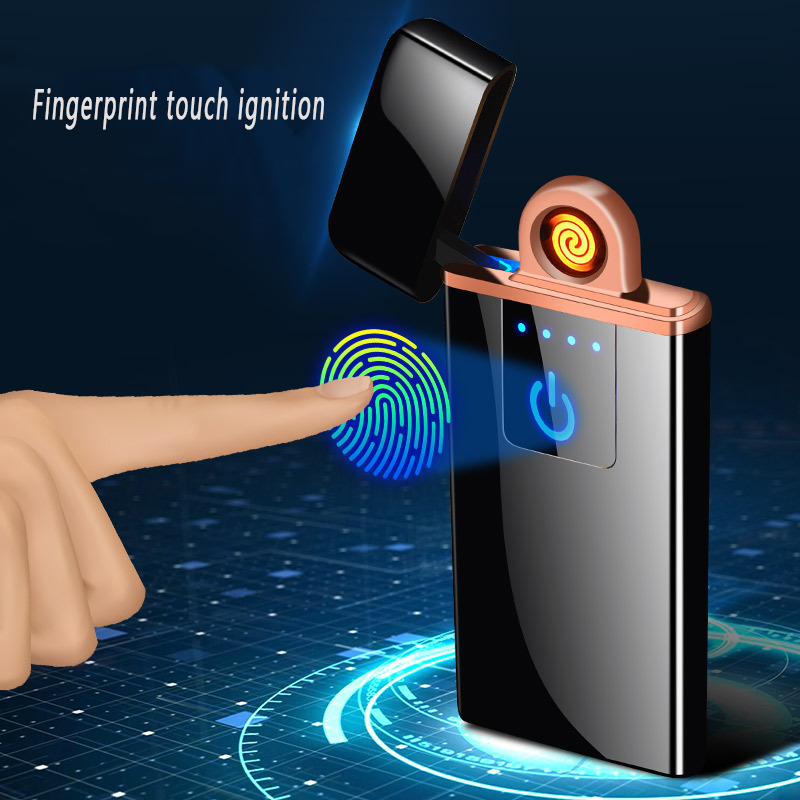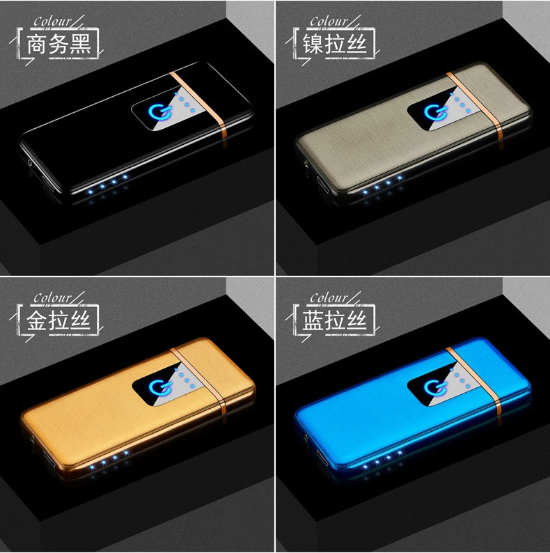 Металлический отпечаток пальца Сенсорное зажигание Светодиодный дисплей батареи Беспламенная Вольфрамовая проволока Ветрозащитная Зажигалка USB Перезаряжаемый мужской подарок