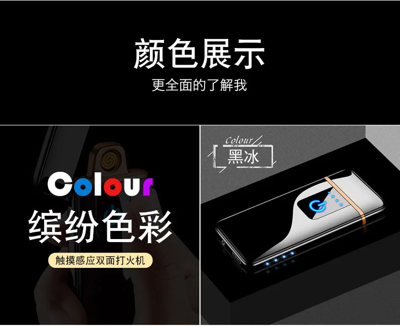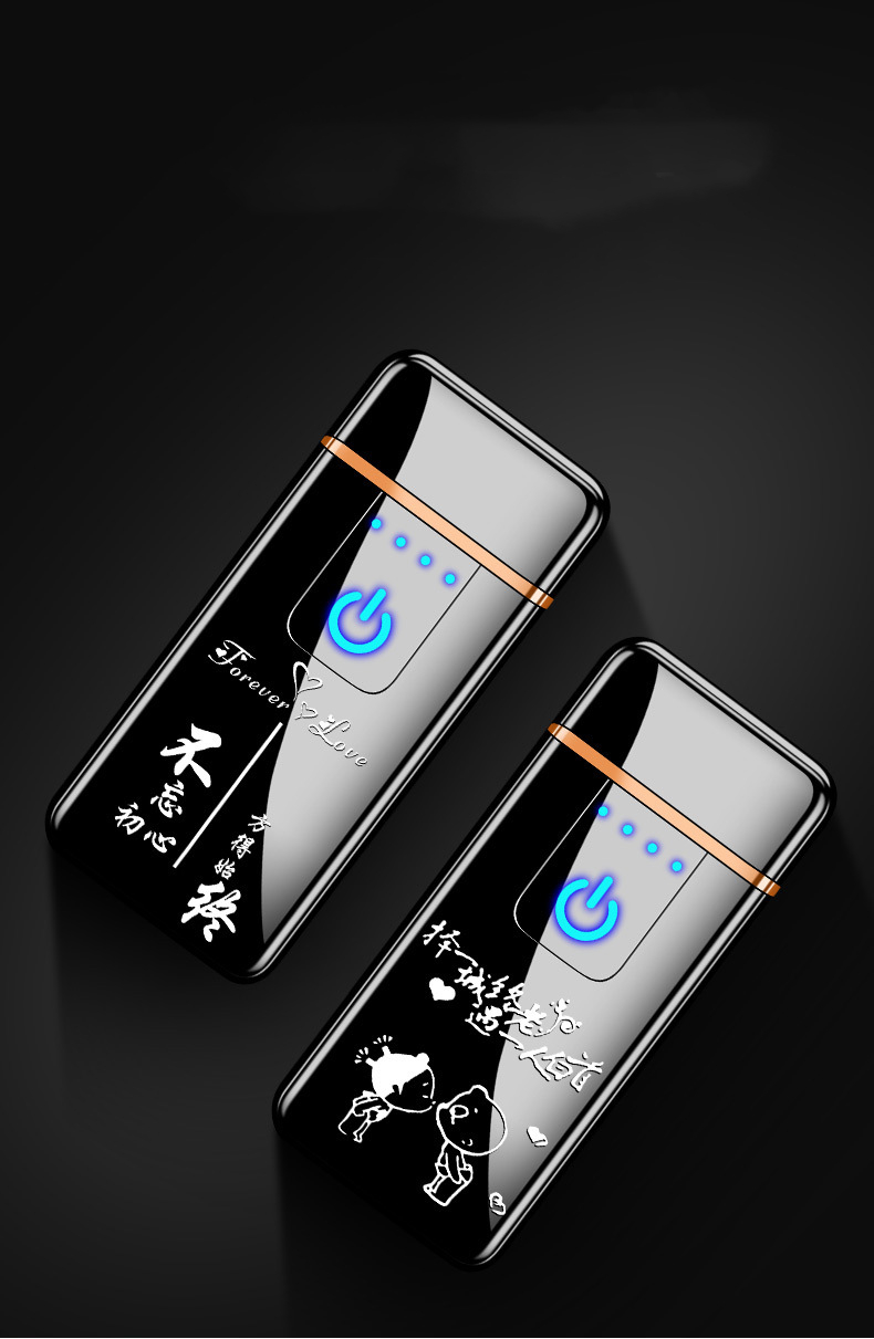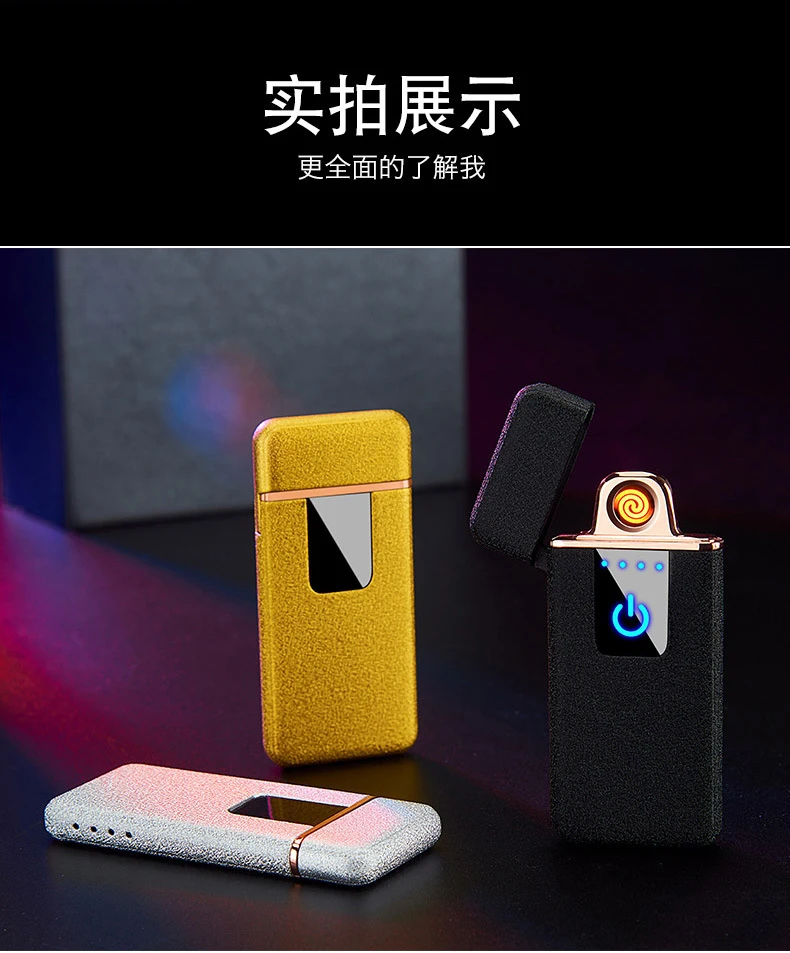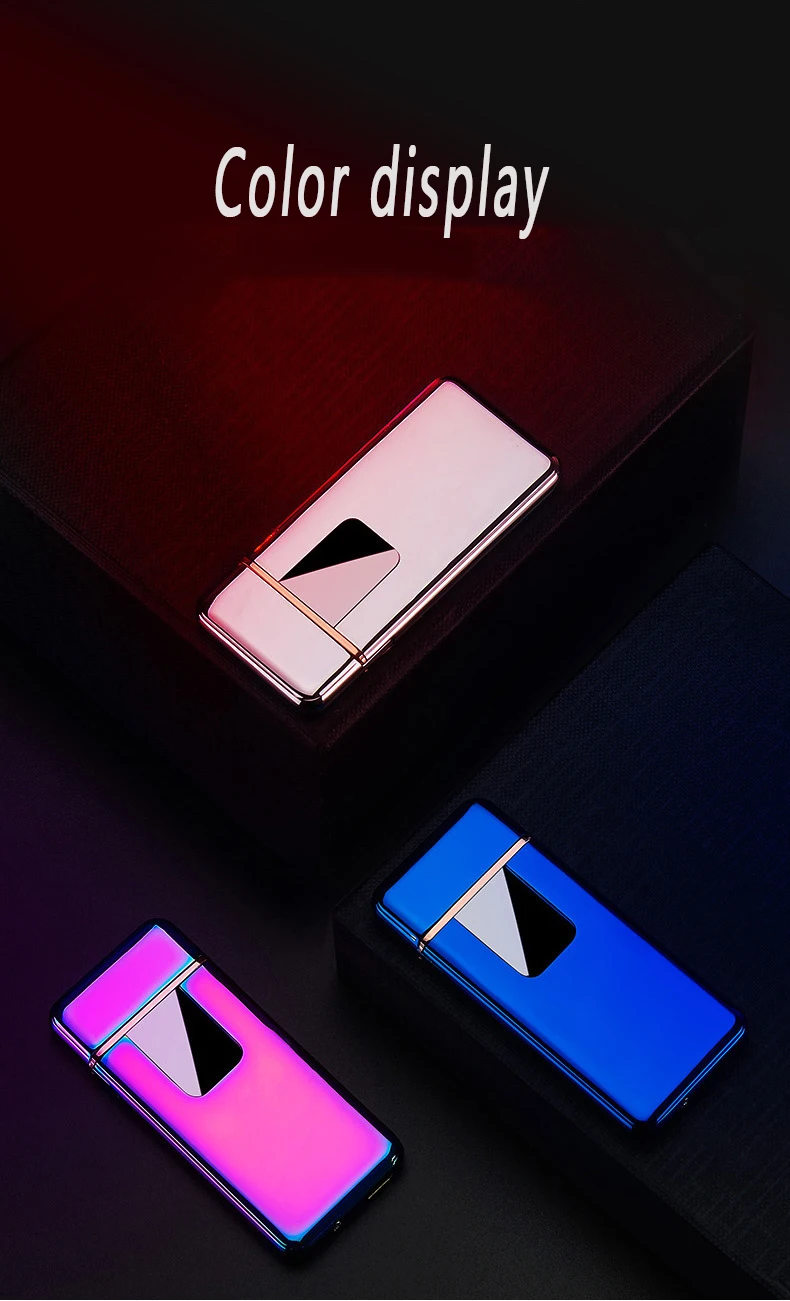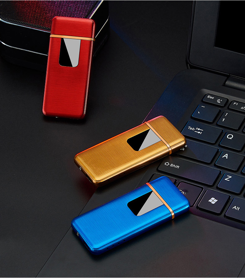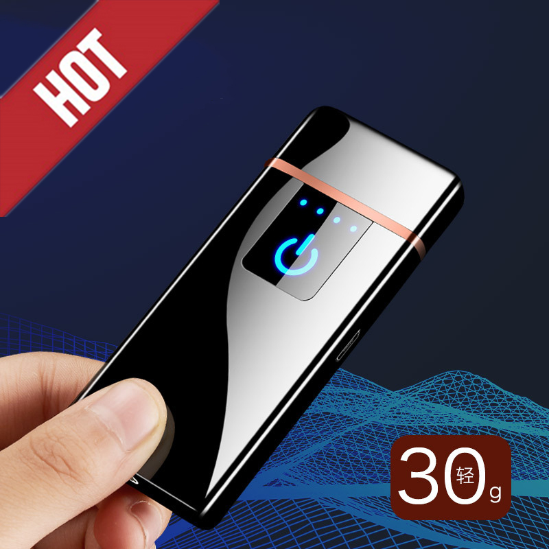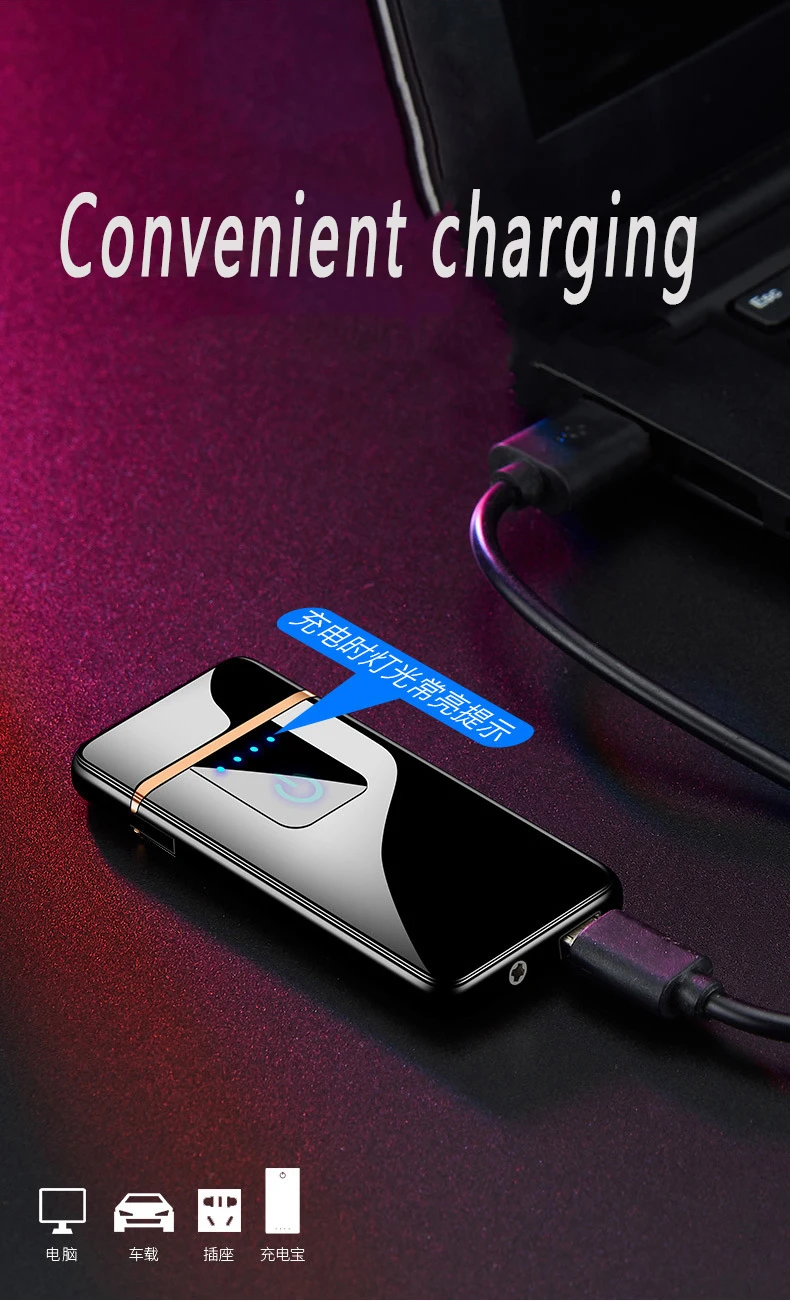 Металлический отпечаток пальца Сенсорное зажигание Светодиодный дисплей батареи Беспламенная Вольфрамовая проволока Ветрозащитная Зажигалка USB Перезаряжаемый мужской подарок