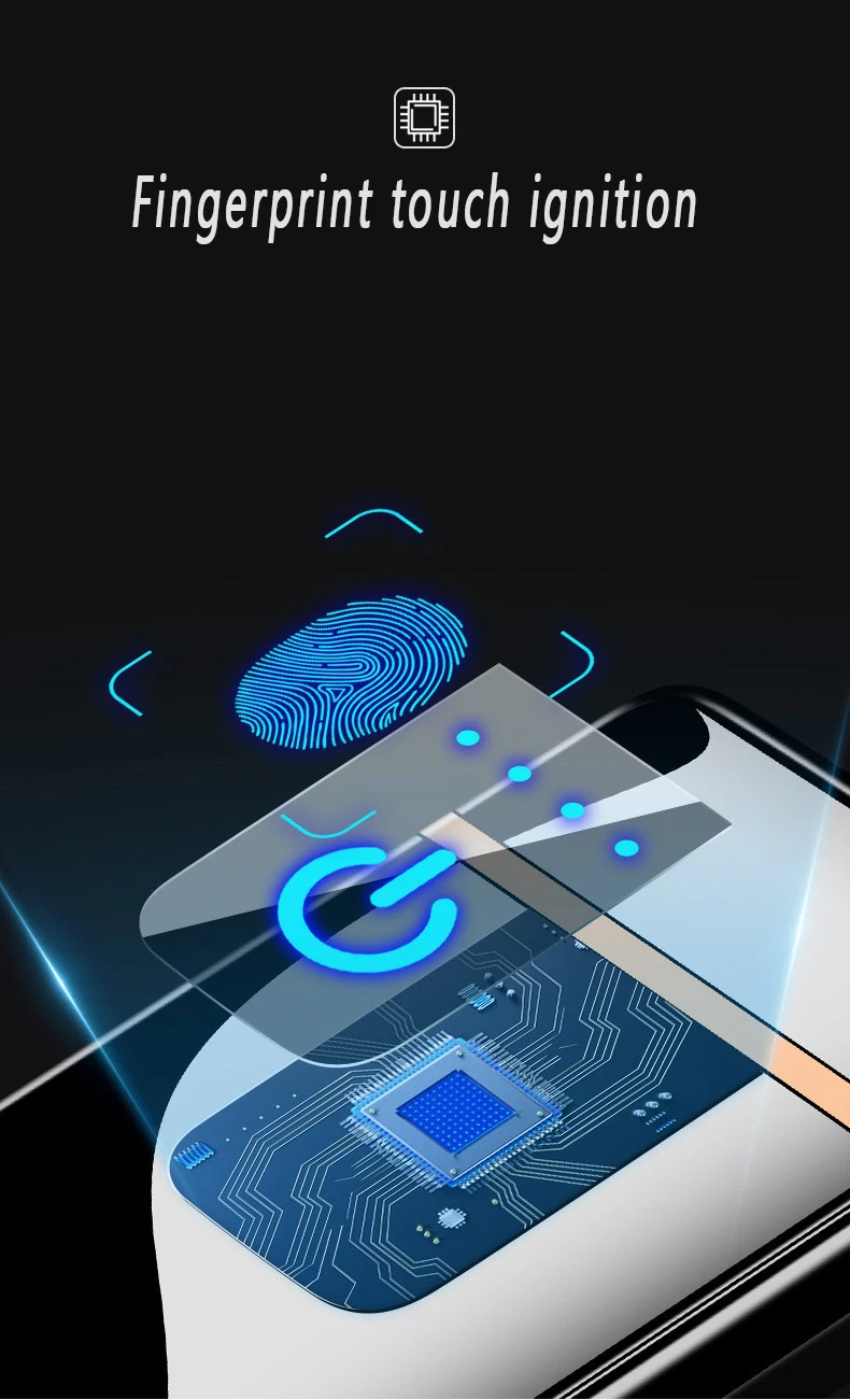 Металлическая ветрозащитная зажигалка с сенсорным экраном и сканером отпечатков пальцев
