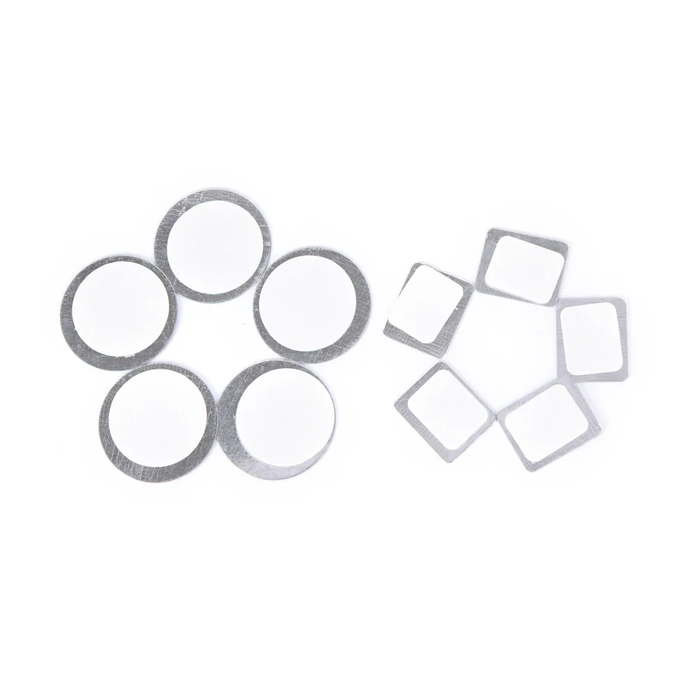 1. Круглые или прямоугольные металлические наклейки идеально подходят для дегоршечных теней, румян, бронзаторов и порошков, которые не предназначены для магнитных палитр.