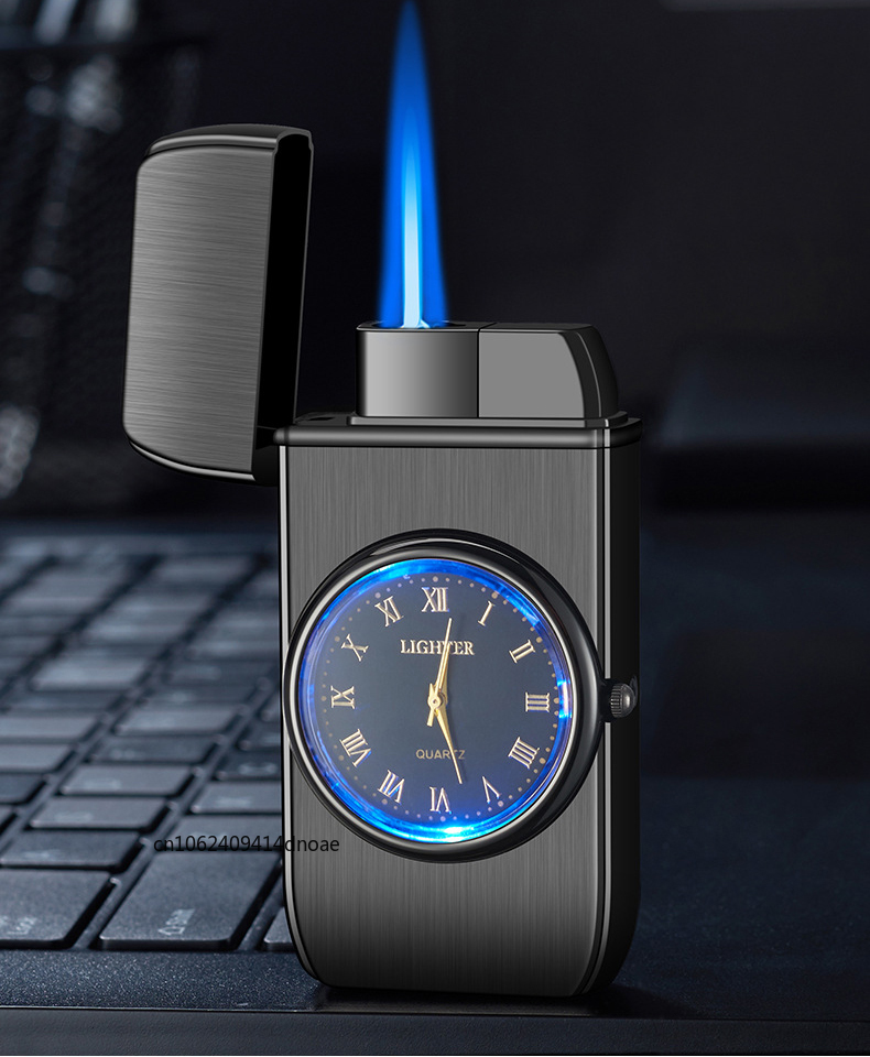 Бутановые газовые зажигалки турбо ветрозащитные зажигалки металлические часы зажигалки мужской гаджет прикуриватели необычные зажигалки подарок