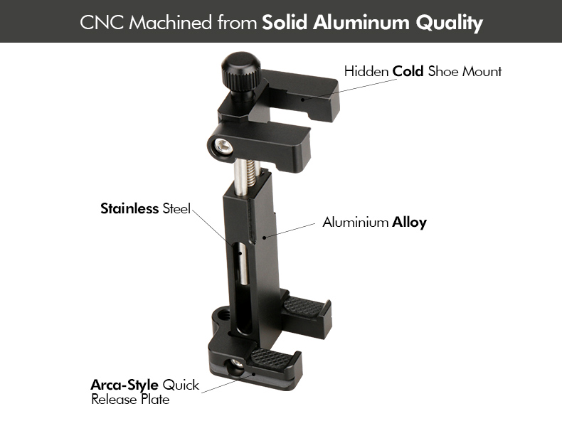 • CNC металла Сделано----- Высококачественный и безопасный Адаптер для крепления на штативе для телефона. Обработка с ЧПУ из аэрокосмического алюминиевого сплава T6061.