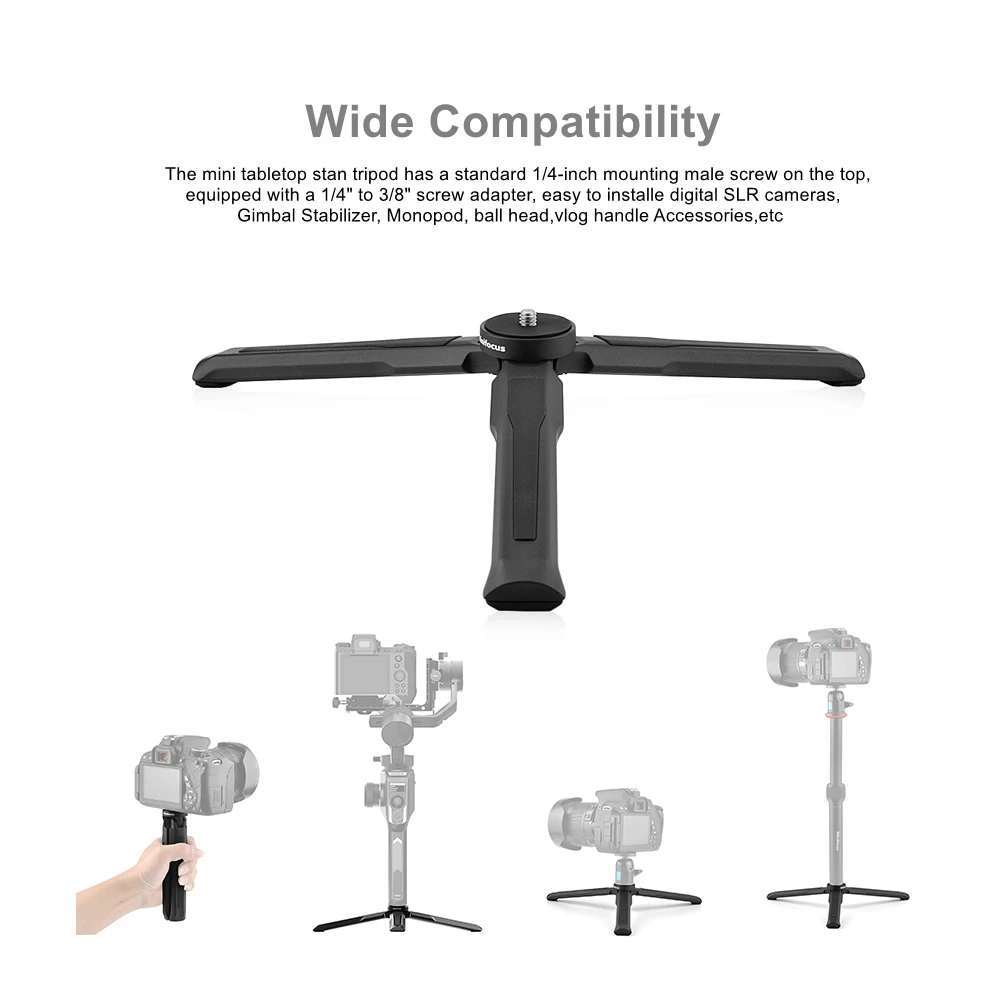 • 【Широкая совместимость】 Штатив для мини-настольной стойки имеет стандартный крепежный винт с наружной резьбой 1/4 дюйма сверху, оснащен винтовым адаптером от 1/4 дюйма до 3/8 дюйма, прост в установке цифровых зеркальных фотоаппаратов, стабилизатор карданного подвеса, монопод, шаровая Головка, аксессуары для видеоблога и т. д.