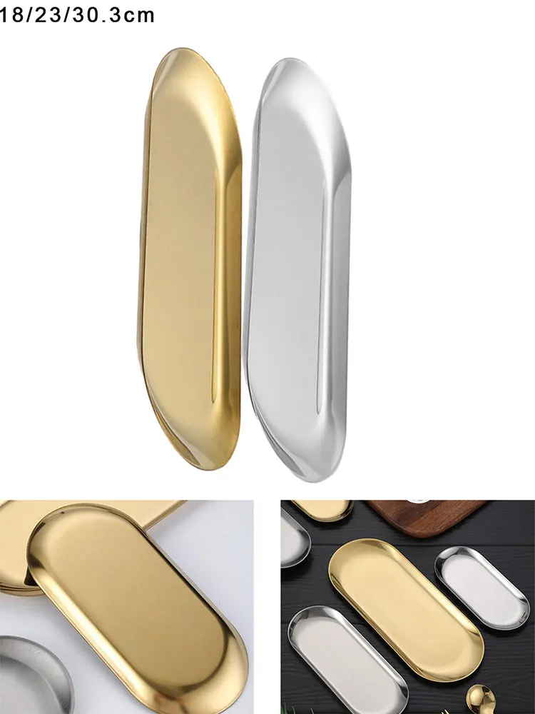 Металлический поднос S/M/L, овальная тарелка из нержавеющей стали для фруктовых тортов, десертов, блюдо для западного стейка, Штабелируемый прямоугольный поднос для закусок