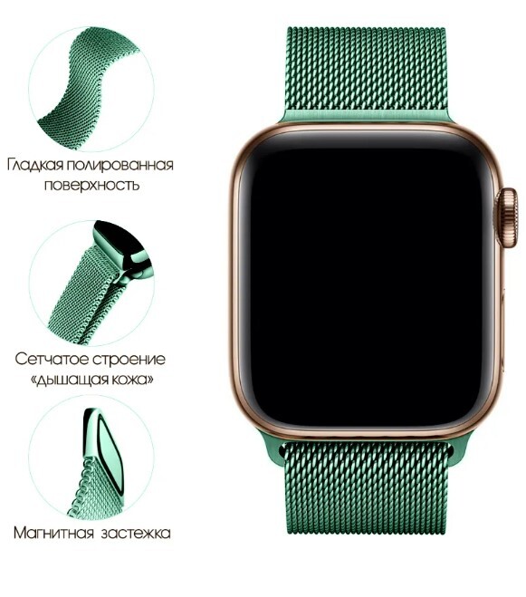 Описание: Миланский сетчатый браслет - практичный и стильный аксессуар, предназначенный для удобного использования часов Apple Watch