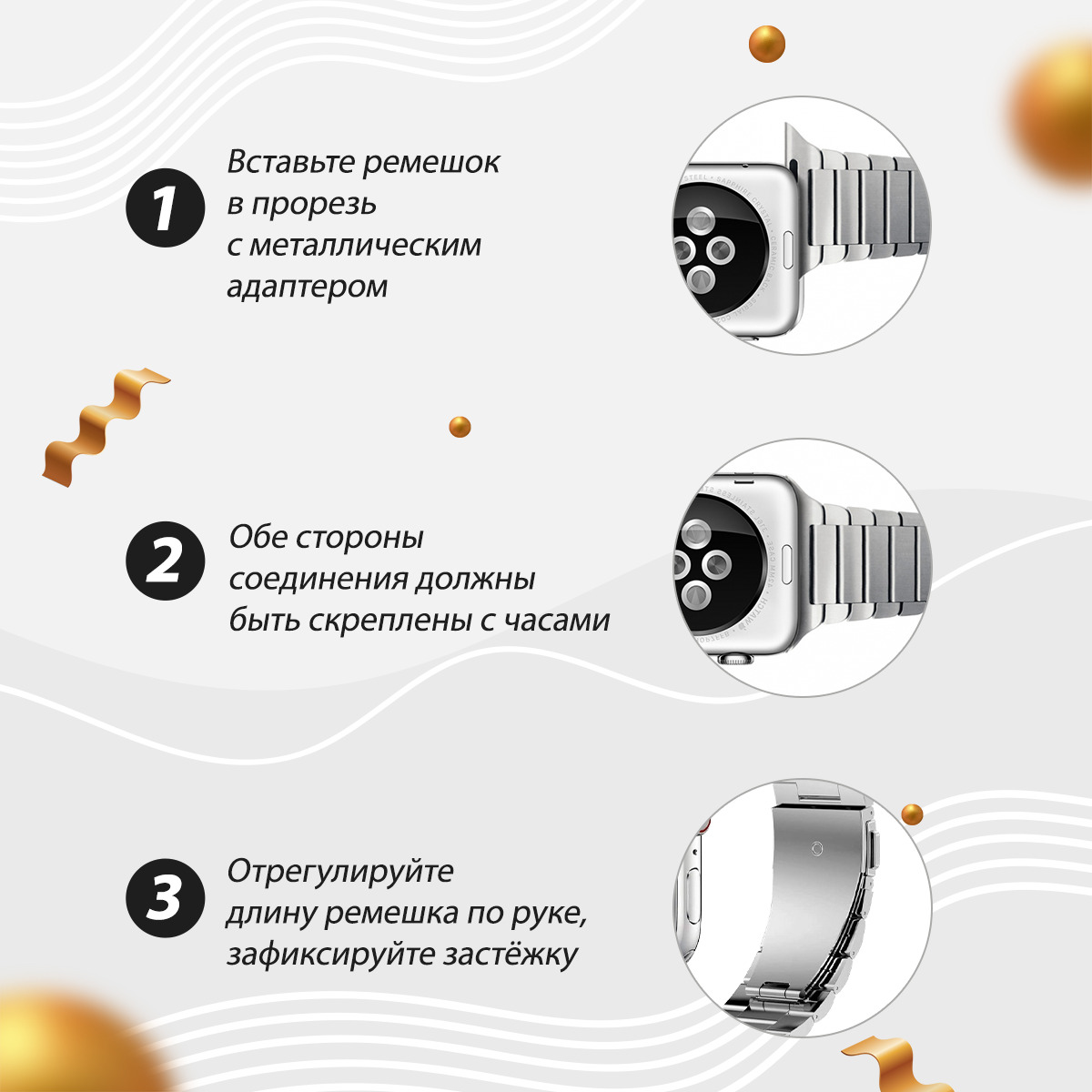 Металлический ремешок для Apple Watch 42-44-45 мм / Браслет блочный для часов Apple Watch series 3,4,5,6,7, SE/ Ремешок блочный для умных часов Эппл Вотч