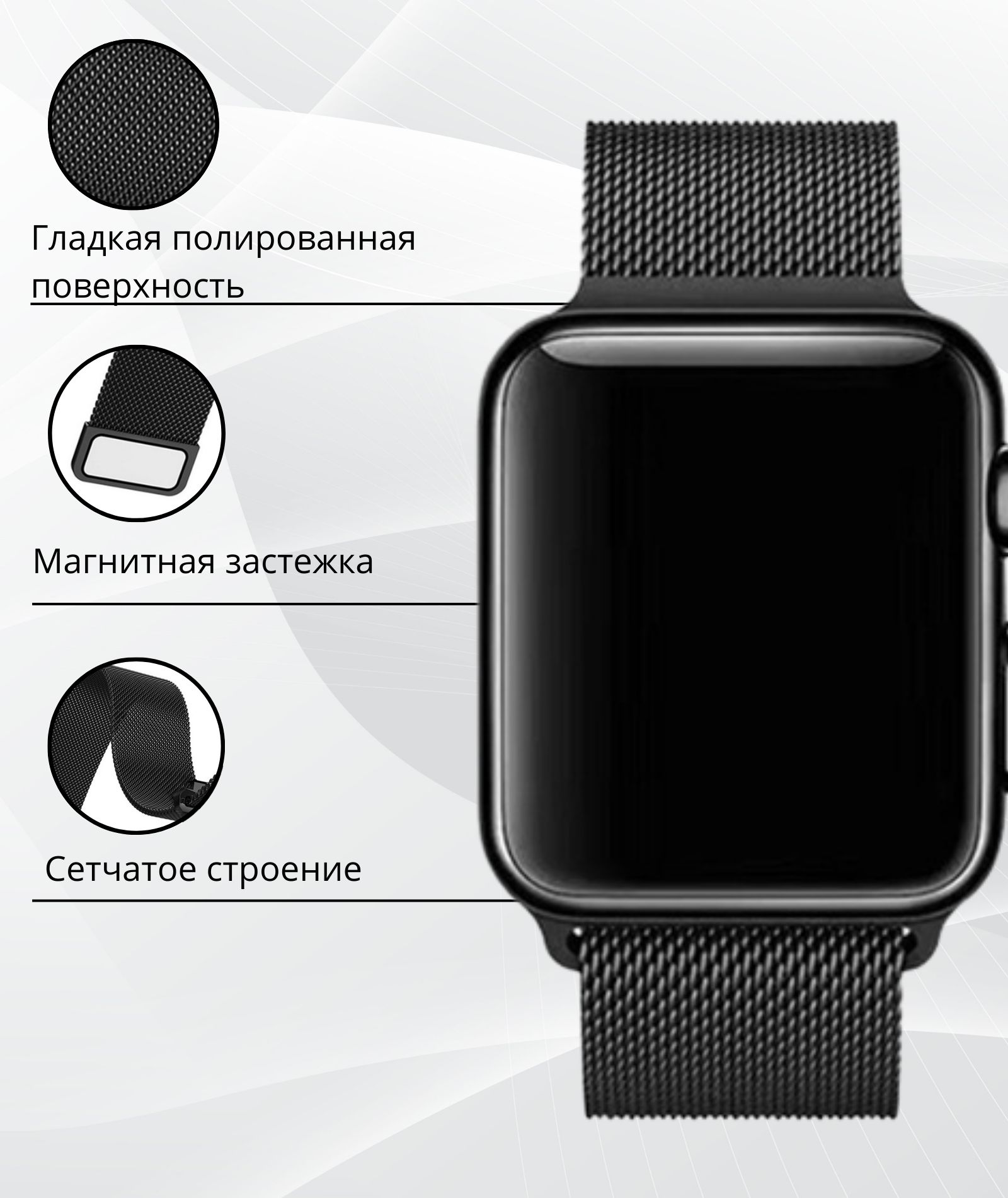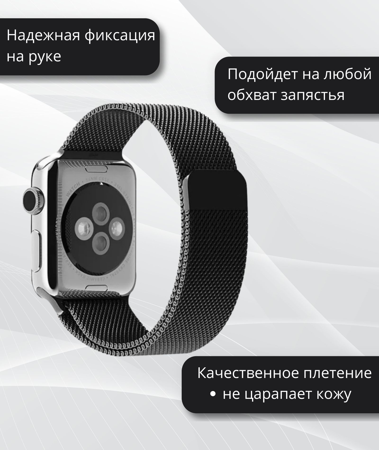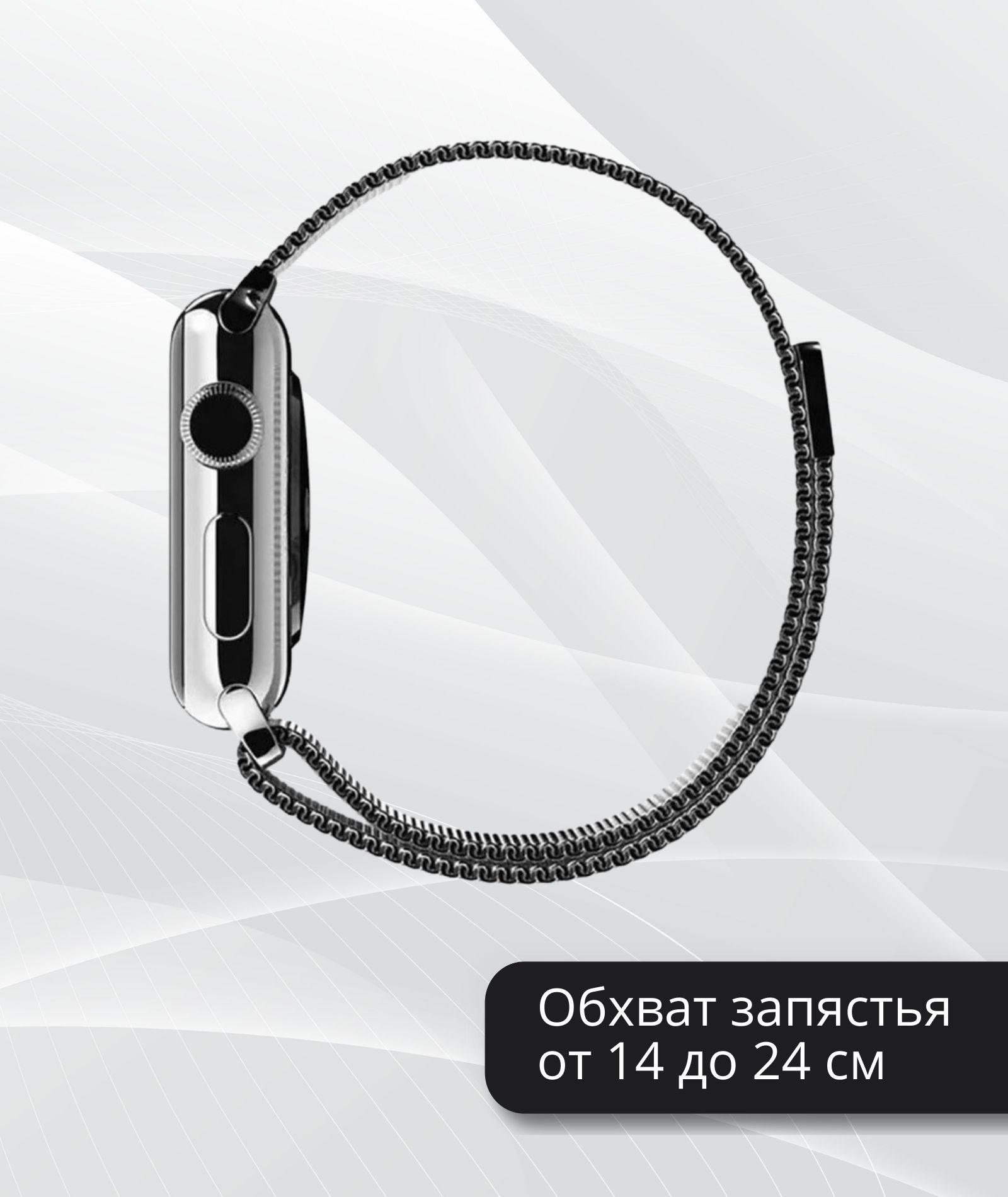 Описание: Миланский сетчатый браслет- это не просто аксессуар, это практичный и стильный спутник для вашего Apple Watch. Изготовленный из прочного и приятного на ощупь металлического сплава, он предлагает идеальное сочетание элегантности и комфорта.