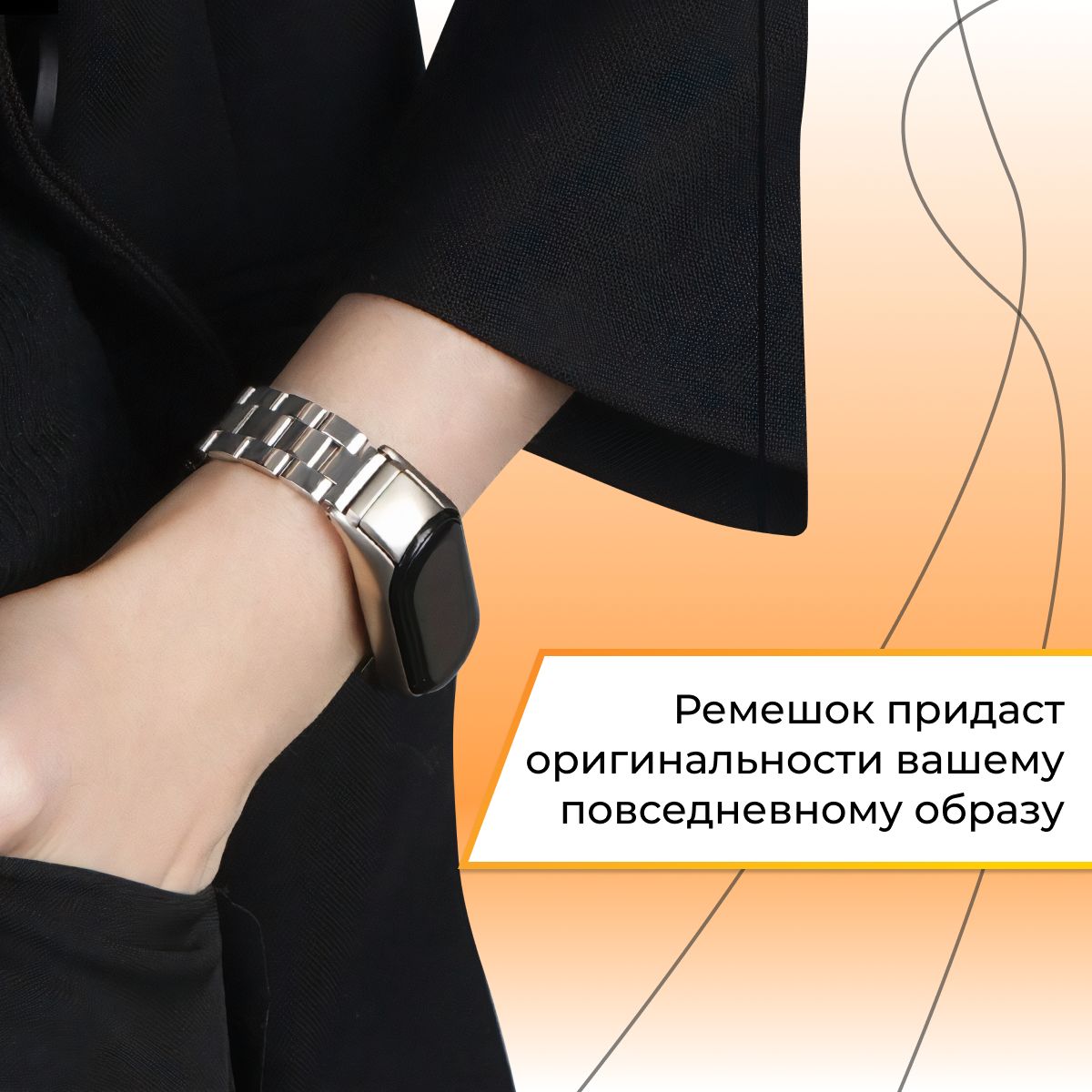 Металлический ремешок для фитнес браслета Xiaomi Mi Band 7 (Metal strap) / Блочный стальной браслет для умных смарт часов / Сменный ремешок для фитнес трекера на застежке, Перламутр