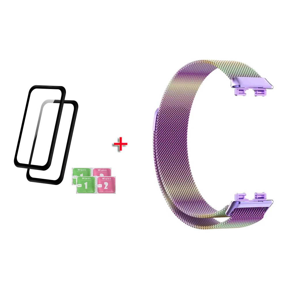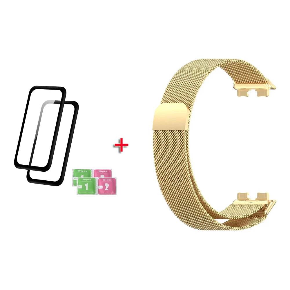 Металлический Ремешок Для Huawei Band 8 браслет со стеклом 3D защита для экрана мягкая плёнка Миланская Магнитная Петля из нержавеющей стали ремешок для часов