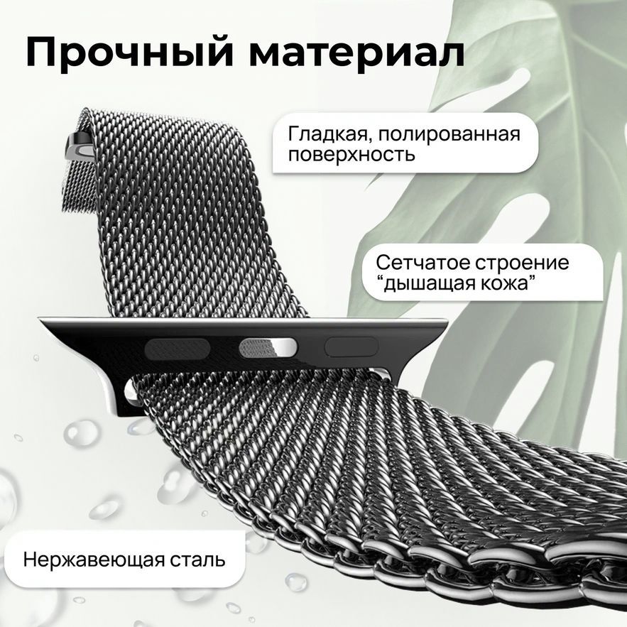 Описание: ЗаголовокРемешок миланская петля Apple Watch – это элегантный и стильный аксессуар, который подойдет к любому образу и сделает ваш часовник еще более привлекательным. Он выполнен из высококачественной нержавеющей стали, которая прочна и долговечна, а также обеспечивает удобную и комфортную посадку на руку.