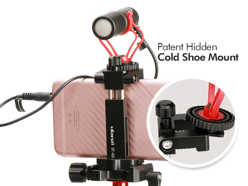 • Скрытое крепление для холодной обуви---- С патентованной скрытой конструкцией крепления для холодной обуви, вы можете установить видео микрофон и светодиодный видео светильник или Gopro на верхней части телефона.
