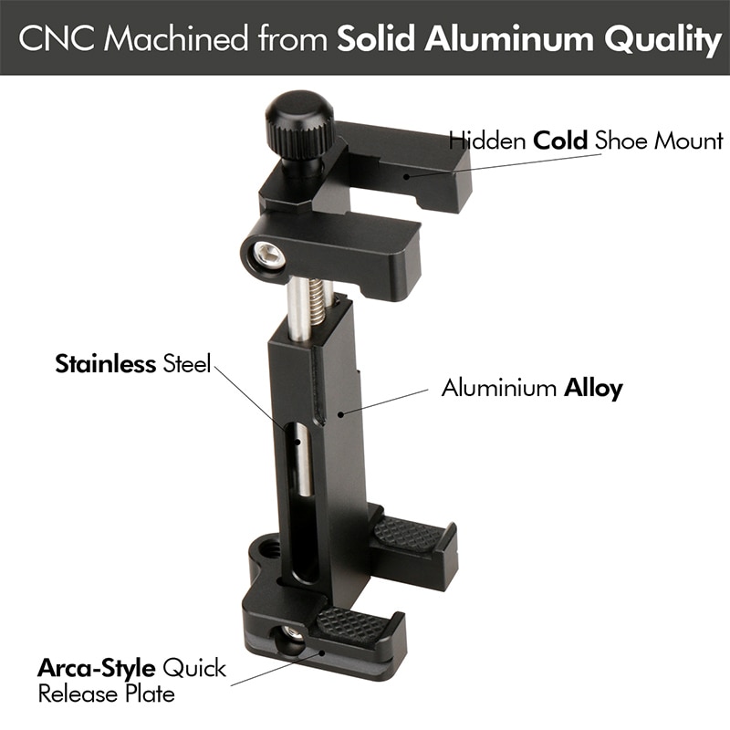 • Металлический станок с ЧПУ----- Высококачественный и безопасный адаптер для крепления штатива для телефона. CNC обработанный от T6061 аэрокосмического алюминиевого сплава.