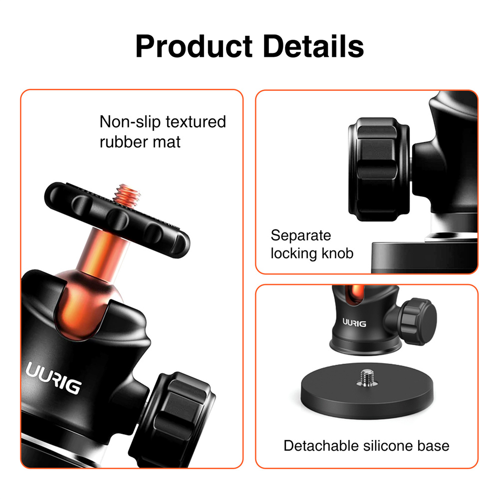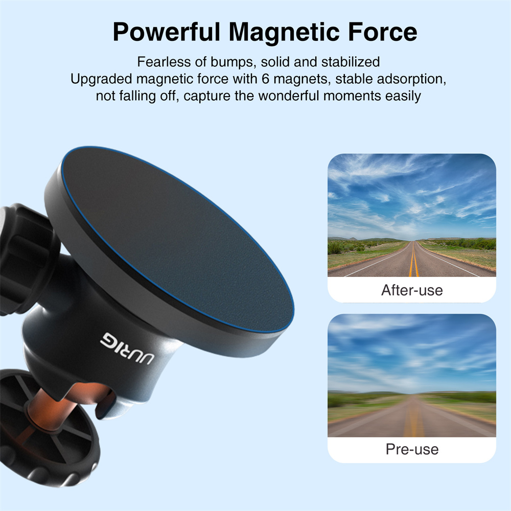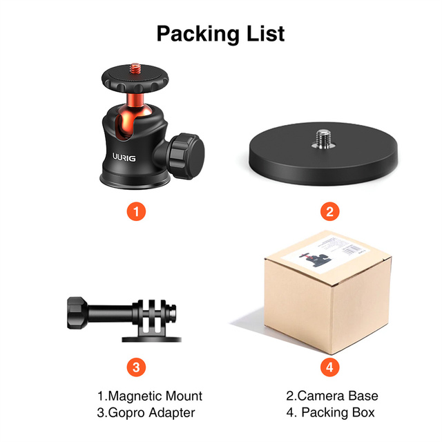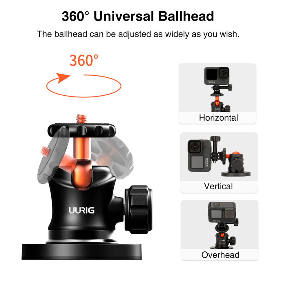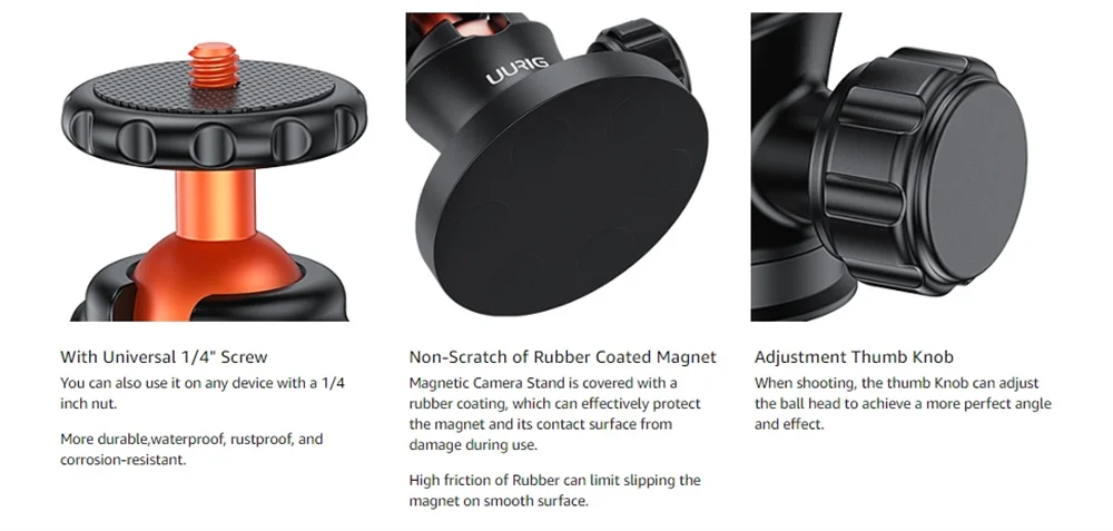 【Сильное магнитное крепление камера】Подставка для магнитного крепления UURIG обладает сильной адсорбционной силой, которую можно легко прикрепить к металлам или другим магнитным поверхностям. Установка проста, никаких отверстий или инструментов не требуется.