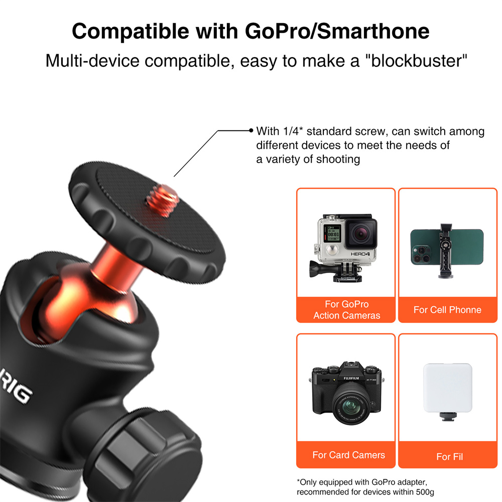 【Регулируемая шаровая Головка с поворотом на 360 ° 】Наше магнитное крепление для камеры использует универсальную шаровую головку с возможностью поворота на 360 °. Вы можете регулировать различные углы для стрельбы (горизонтальная съемка, вертикальная съемка, съемка под низким углом, съемка под высоким углом) Затяните ручку регулировки на шаровой головке, вы можете заблокировать под определенным фиксированным углом. Позвольте вам делать самые идеальные снимки и записывать прекрасные моменты в вашей жизни.