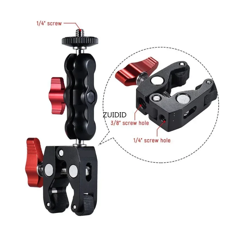 Металлический супер-зажим с двойной шаровой головкой, волшебный зажим для руки, отверстие 1/4 дюйма 3/8 дюйма для телефона, видеокамеры, монитора, фотографического интерфейса