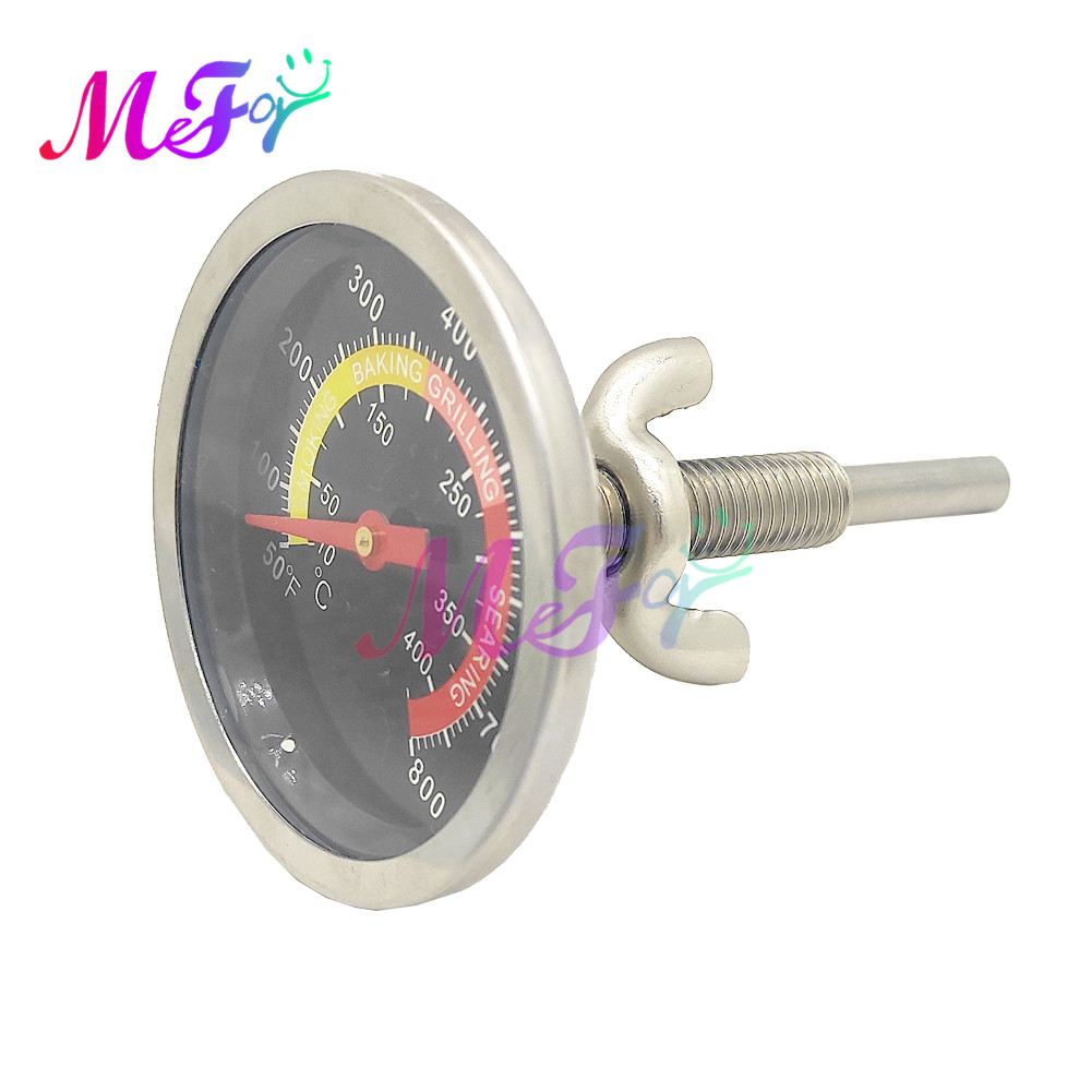 • Это нержавеющая сталь и очень легко установить, так как вы просто вставляете стебель через отверстие на вашей яме/курильщике/гриле, а затем Прикрепите гайку, которая входит в комплект.