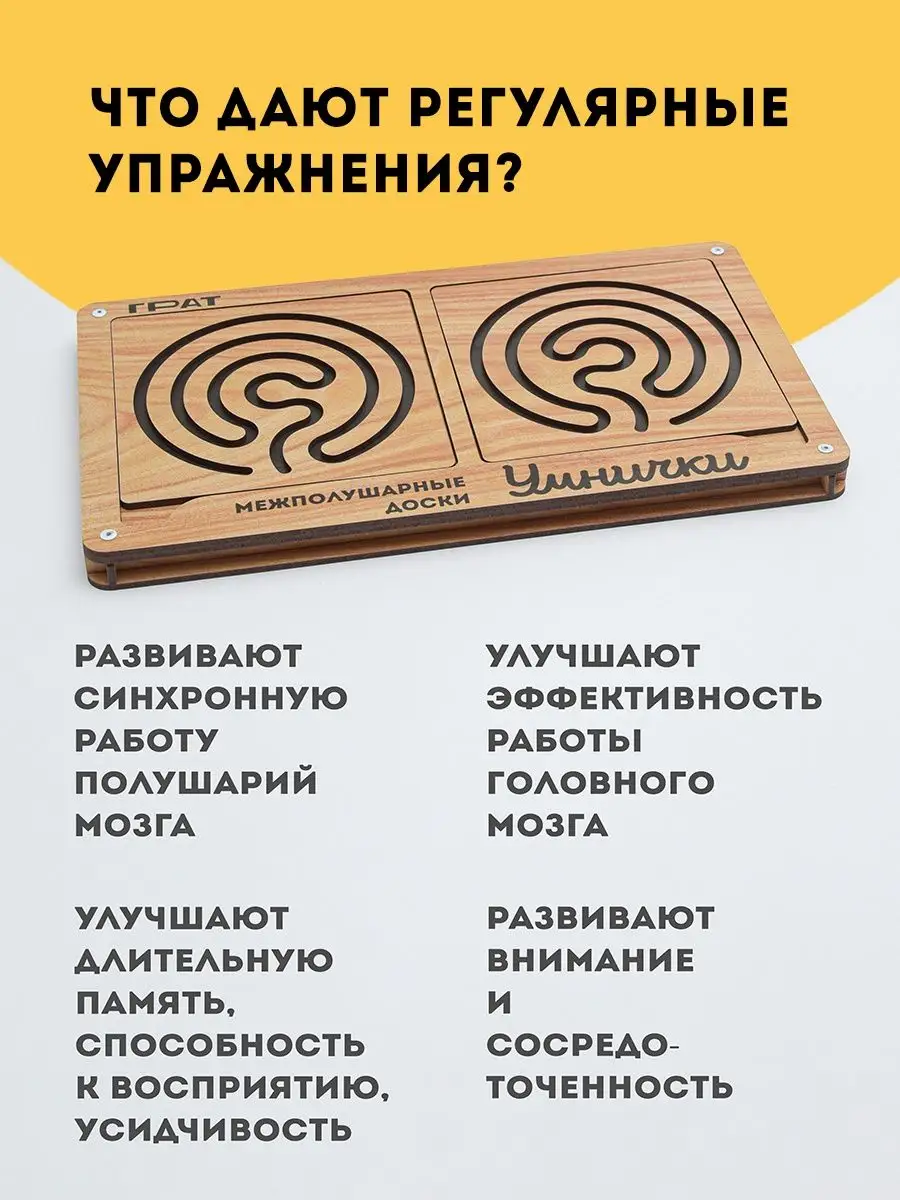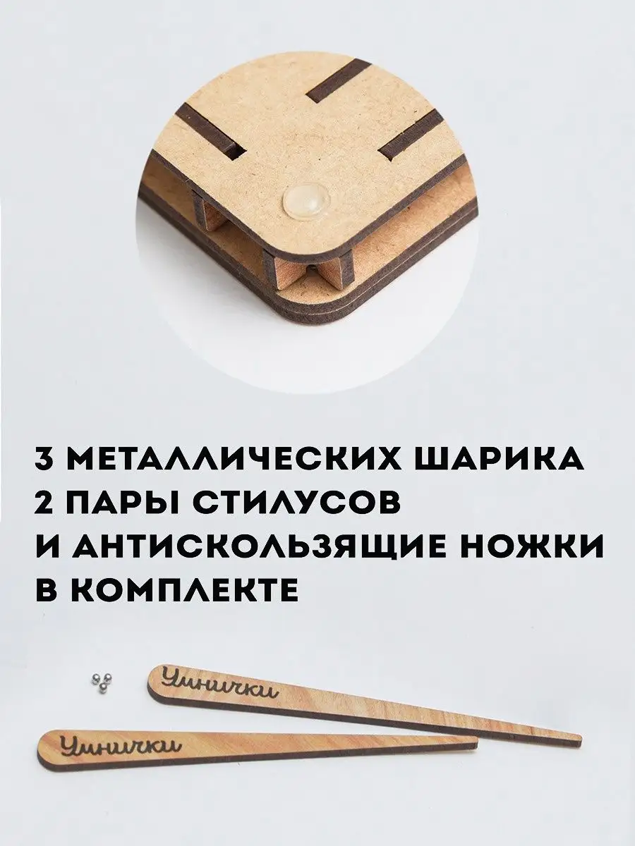 Комплектация 4 парные досочки из дерева; 8 квадратиков; 4 стилуса – палочки , 3 металлических шарика , антискользящие ножки 4 шт; межполушарные доски для детей; головоломка; воспитателю в детский сад