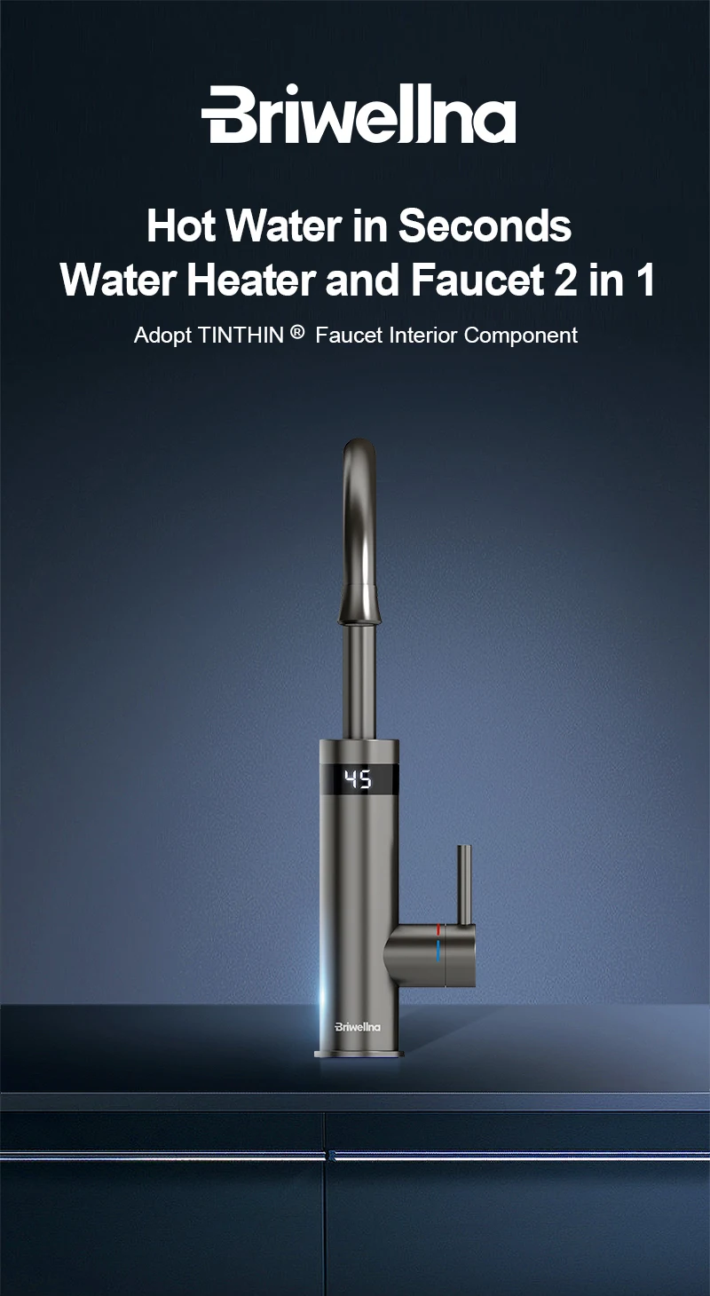 Мгновенный смеситель для горячей воды Briwellna, темно-серый Электрический смеситель для кухни, 220 В, Электрический водонагреватель